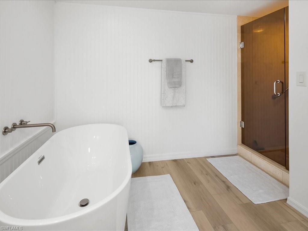Within the prestigious enclave of Wedgewood at Bonita Bay, residence number four zero three at Two Six Nine One Zero Wedgewood Drive offers a refined interpretation of resort-style condominium living, framed by sweeping lake and golf course views. This beautifully remodeled three-bedroom, two-bath residence is thoughtfully designed to capture light, scenery, and an effortless indoor-outdoor lifestyle. Luxury Vinyl and polished marble flooring flow throughout the sunlit living spaces, creating a sophisticated yet inviting atmosphere. The updated kitchen is both elegant and functional, featuring granite countertops, an under-mount sink, refined cabinetry, and stainless-steel appliances, all positioned to enjoy tranquil water and fairway vistas. Adjacent dining and living areas open seamlessly to the lanai, which has been thoughtfully converted into extended interior living space with sliding glass doors along the screened enclosure, ideal for entertaining or quiet relaxation. The primary suite is a serene retreat, highlighted by a grand picture window that perfectly frames lush greens and reflective ponds. Two additional guest bedrooms provide comfort and flexibility for visitors or a home office. Modern conveniences include a well-maintained air-conditioning system installed in two thousand sixteen and a water heater replaced in two thousand twenty-one, ensuring peace of mind. A rare private two-car enclosed garage adds exceptional value and convenience. Residents of Wedgewood enjoy a resort-style pool, tennis courts, screened pavilion, and gas grilling area set within a park-like landscape. Beyond, Bonita Bay offers waterfront parks, a private beach, marina access to the Gulf, and optional membership to the Bonita Bay Club with championship golf, dining, fitness, and spa amenities. Ideally located near dining, shopping, and regional travel access, this residence presents a compelling opportunity to embrace the elevated Bonita Bay lifestyle.