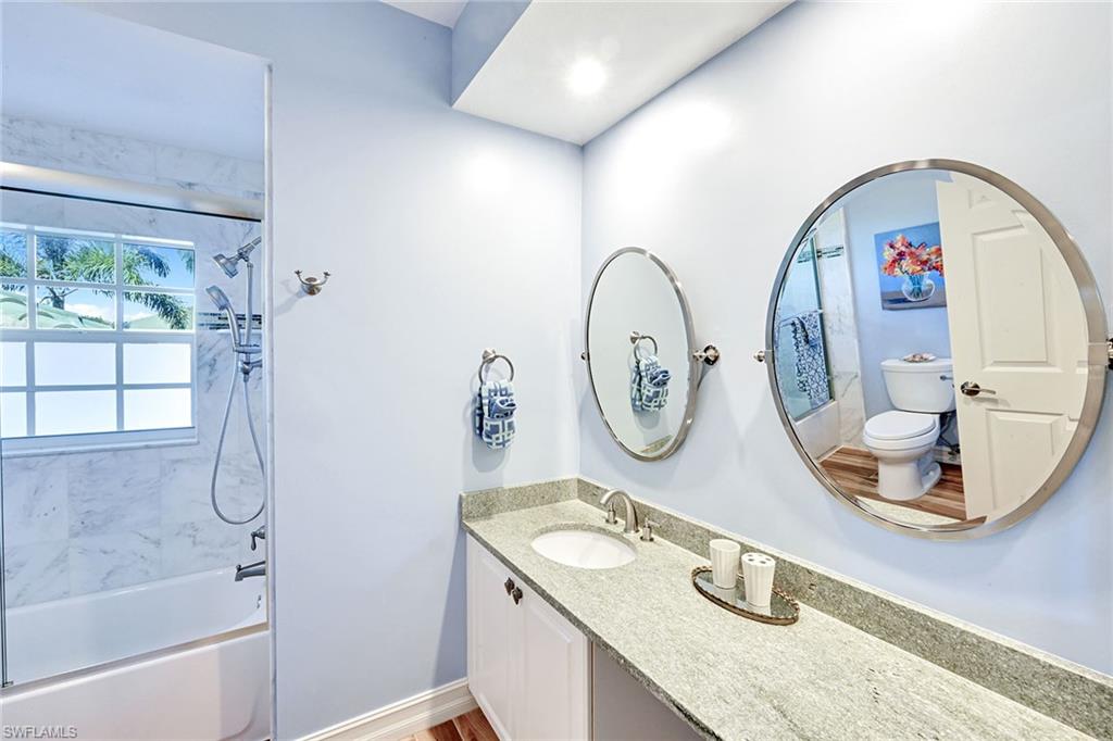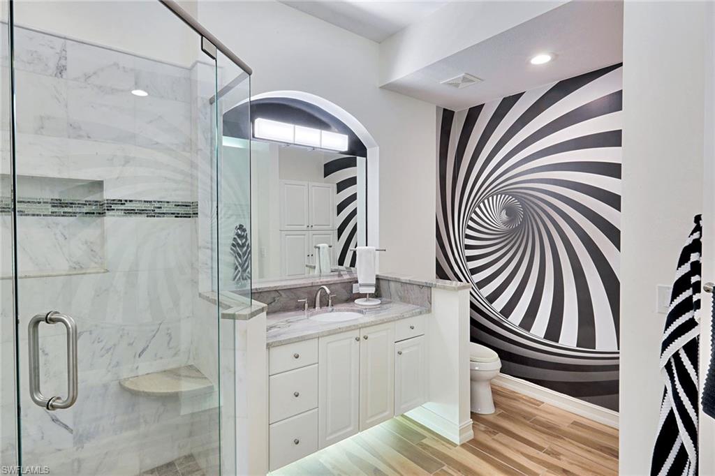 Welcome to effortless living in Palm Colony at Pelican Landing, where sweeping golf course vistas and tranquil lake views set the tone for this beautifully updated second-floor residence. Move-in ready and thoughtfully renovated, this home offers a harmonious blend of modern style and comfort, with a striking black and white contemporary interior that invites you to relax and unwind from day one. With more than 2,000 square feet of refined living space, the residence includes three bedrooms and three full baths. Highlights include wood-look tile flooring, vaulted ceilings and a fresh, modern palette. The kitchen is finished with granite countertops and a distinctive backsplash, while all three baths have been fully redesigned with elegant, high-end touches. Picture windows frame the golf course from the living room, and the dining area overlooks the lake, creating a sense of connection to the outdoors throughout. Palm Colony is one of Pelican Landingu2019s sought-after enclaves, offering access to two pools, two fitness centers and an enhanced entertaining experience at the Canary Island pool, which features a separate hot tub and a community barbecue area for social gatherings. Residents of Pelican Landing also enjoy a private beach park on Big Hickory Island, tennis, pickleball, sailing, bocce and a kayak and canoe park. A rare offering combining location, style and access to one of Southwest Floridau2019s amenity-rich communities.