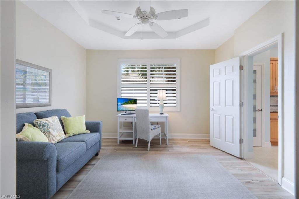 THE CLIFFNOTES: Renovated interiors, private creek view, 2nd floor, large lanai, turnkey furnished, AC 2020, tankless hot water heater, 1-car attached garage, newer roof courtesy of condo association, new hurricane-rated high-impact windows and sliders being installed by the condo association at NO COST to owners, two community pools with gas grills and social room, well managed budget and reserves. Annual fees cover everything but your monthly electric bill and personal property insurance. THE FULL STORY: Enjoy the tranquility and privacy of an oversized lanai with a 2nd floor view of a flowing creek. Let the charming company of turtles and native birds entertain you with only nature in your line-of-sight, not the back of other lanais and condo units. Move-in ready and renovated. Nothing is `original`. Turnkey furnishings speak to a coastal vibe ideal for your seasonal vacations, everyday beach life, or rental investment. Fully pocketing sliding glass doors open the interior space to the outdoors where you can spread out on your extra large lanai. A spacious split bedroom floorplan, uniquely offering almost 1900 sq ft with 3 bedrooms PLUS a den and 2 bathrooms. Guests will enjoy their own `wing` with spacious bedrooms and luxurious bath. Updates throughout include granite countertops, stainless steel appliances, new bath fixtures, 20-inch tile on the diagonal, luxury vinyl flooring in bedrooms, 4-inch plantation shutters, newer roof and exterior paint, AC 2020, and a tankless hot water heater allowing for extra closet storage. CREEKSIDE CROSSING: An enclave of coach homes offering two community pools, spa, fountain feature, gas grilling stations, and social room. PELICAN LANDING: A master-planned community with an oasis of preserve land spanning 2,400 acres with miles and miles of walking and biking trails. AMENITIES INCLUDED: Private Beach Island, full Tennis Center with 12 Har-Tru courts and 6 pickleball courts (no extra social or sport membership required for tennis/pickleball), expansive fitness facility with state-of-the art equipment and a calendar of classes, Hobie Cat sailing center, multiple kayak & canoe parks, butterfly garden, and boat docks available for rent or purchase based on availability. GOLF OPTIONAL: The Nest Golf Club is a beautifully renovated facility offering a variety of dining atmospheres and events. Multiple levels of membership available to accommodate your desired lifestyle in Paradise. Now is the time to make your move!