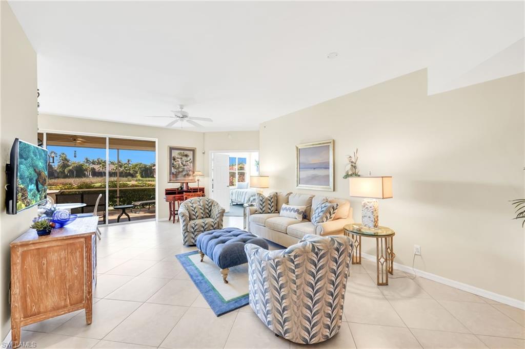 Step into this bright and inviting first-floor coach home in Creekside Crossing at Pelican Landingu2014where effortless Florida living meets style and comfort. This turnkey furnished residence offers an open and welcoming layout with a private one-car garage and a screened lanai that invites the gentle trade-winds and lush surroundings with views of the golf course.Enjoy relaxed elegance with recently replaced tile floors on the diagonal throughout the main living areas, plantation shutters, and large pocketing sliders that open to your lanaiu2014perfect for entertaining or simply unwinding after a day in the Florida sunshine. The thoughtfully finished kitchen features stainless-steel appliances, a tile backsplash, light quartz countertops and an easy flow into the living and dining areas. Two bedrooms and two full baths along with a flexible third bedroom/den space, providing the ideal setup whether youu2019re hosting guests, working from home or unwinding in your own retreat.Beyond your front door is the tranquil setting of Creekside Crossing: a boutique enclave of low-rise coach homes nestled at the south gate of Pelican Landing. With two resident-pools, a spa, clubhouse and barbecue area, this neighborhood combines convenience and community with low maintenance living. Walk or bike to shopping, dining and everyday amenities or simply soak in the calm of the 15th hole of the award winning Hurricane course at Pelican Landing.As part of the broader master-planned Pelican Landing community, youu2019ll enjoy a rich array of lifestyle extras: miles of walking and biking trails winding through preserved wetlands, kayak/canoe launch areas on Spring Creek, a full tennis and pickle-ball complex and a private 34-acre island beach park along the Gulf of Mexico. Optional social or golf membership is available at the renowned Pelicanu2019s Nest Golf Clubu2014yet membership is not required to enjoy the communityu2019s everyday offerings.This extraordinary valueu2014the lowest priced residence currently listed in Creekside Crossingu2014offers a rare opportunity to embrace the Southwest Florida lifestyle just minutes from Coconut Point, the beaches and the airport. Bring your bags and your sense of adventure: your new home and Florida chapter await.