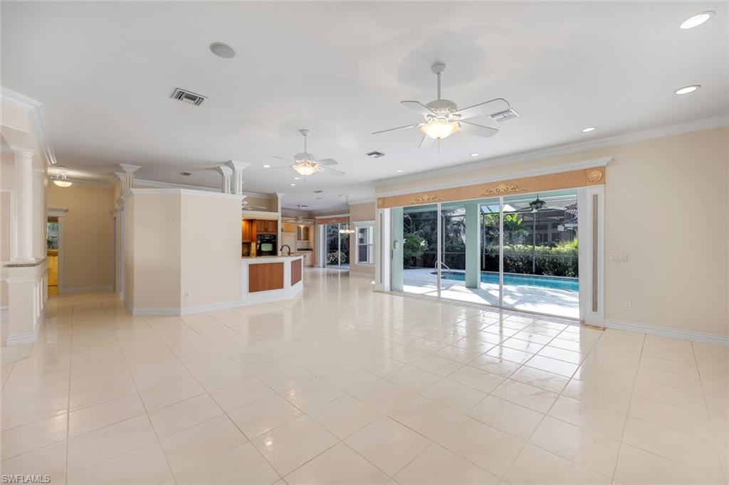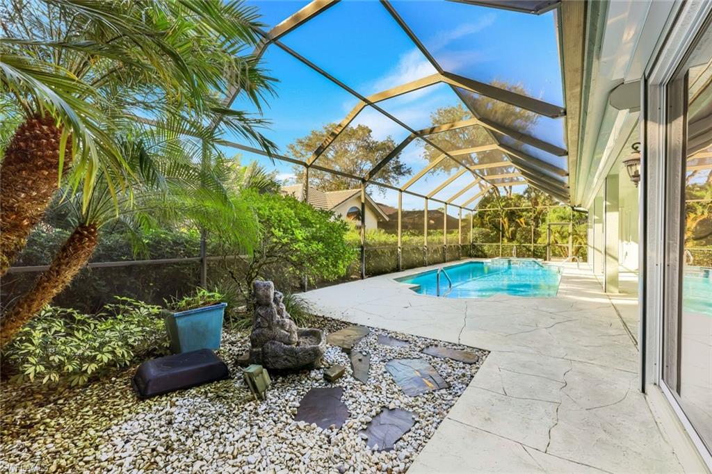 Beautiful 3 beds, 3 baths, Den, And 3 CAR GARAGE with Southern Exposure! This home is ready for your designing ideas. While so many older homes are all closed off, this home has an Open floorplan with Living and dining flowing through to the Family room with no walls to remove! Crown molding, large 18` glazed porcelain tile throughout living areas. New roof in 2019, new A/C 2025, new solar pool heater in 2020 and updated Guest bath and Master bath to name just a few of the recent updates. This home has a 3-car garage that is rather unique in that you have 2 car bays off the semicircular driveway, and a 3rd car bay that enters off of Pennyroyal Dr from the rear of the garage with a separate garage door. But total is a 3-car garage with lots of storage for all the toys like bikes, and beach chairs and tools. Perfect for the do it yourselfer! Custom built-in Entertainment Center along the Family room wall. The guest suites are on the opposite side of the home for total privacy with front guest bedroom having an adjoining guest bath, and the rear guest bedroom suite has a full bath that also opens to the pool area. Don't miss this best buy in Pelican Landing! Pelican Landing is located on 2400 acres west of US 41 and nestled along Estero Bay. Pelican Landing offers the most amenities for the lowest master HOA of any community in Lee or Collier counties. 12 Tennis courts with Full time Tennis director, Canoe & Kayak Club along Spring Creek with Canoes and Kayaks available for all residents, state of the art Fitness Center, Pickleball, Bocce Ball, and miles of biking and jogging trails. There are 36 holes of Championship golf designed by Tom Fazio at Pelican's Nest Golf Club with golf and Social memberships available on a short wait list.