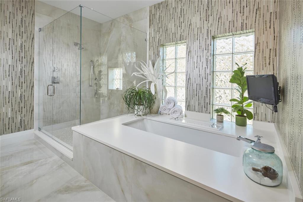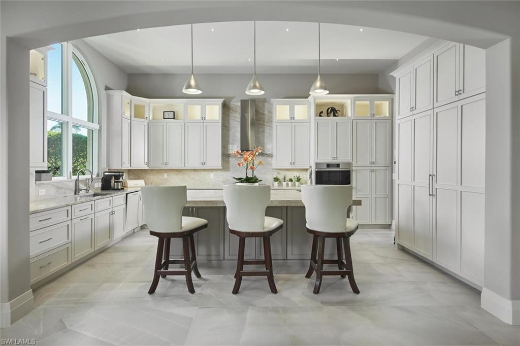 This exquisitely curated 4-bedroom, 4.5-bathroom completely remodeled home in the heart of The Colony offers a masterclass in coastal elegance and architectural sophistication. From the moment you enter, the home captivates with an airy, open-concept design defined by soaring 14'ceilings, floor-to-ceiling windows, and refined finishes that invite the lush Florida landscape inside.Designed for those who refuse to compromise on style or substance, this residence isn't just a home, it's a sanctuary where every designer detail has already been perfected.The grand living area serves as the centerpiece of the home, featuring designer wall treatments and a seamless flow into the dining space, perfect for hosting intimate dinners or large-scale gatherings. Natural light pours through expansive glass doors, highlighting the large scale tile flooring that runs throughout the main living areas.The dream kitchen is a culinary masterpiece, centered around a massive waterfall island and framed by a majestic arched entryway. High-end features include custom white shaker cabinetry with integrated lighting, premium stainless steel appliances and a professional-grade vent hood and a picturesque arched window overlooking the tropical grounds.The primary wing is a private retreat defined by understated elegance. Wake up to serene views through expansive windows, or step directly onto the master terrace to enjoy the morning breeze. The spa-like master bath is a sanctuary of its own, featuring dual floating vanities with sleek hardware, deep soaking tub and a massive frameless glass rain shower and bespoke wall coverings and striking fixtures.Step outside into your abundant private veranda. The outdoor space features a custom stone waterfall fountain that cascades into a heated spa and pool. Overlooking a serene lake with a central fountain, the primary terrace and patio areas provide the perfect backdrop for evening cocktails and sunset views.Exceptional Details include architectural arches and high ceilings that enhance the sense of volume.Lush tropical landscaping surrounding the property for maximum privacy, private elevator, new hurricane impact windows and doors and new roof in 2025.Why wait months for renovation when perfection is ready right now? This captivating estate is offered fully realized and move-in ready, allowing you to bypass the process and proceed straight to the lifestyle youu2019ve earned. Living at The Colony includes private membership to The Bay Club,formal and informal dining and events. Access to a PRIVATE BEACH PARK, a huge tennis program, canoeing/kayaking, sailing club, bocce &pickleball, the list goes on! Elective private golf options. The Colony is a quick jaunt to the airport and just a mile and a half to great dining and shopping.
