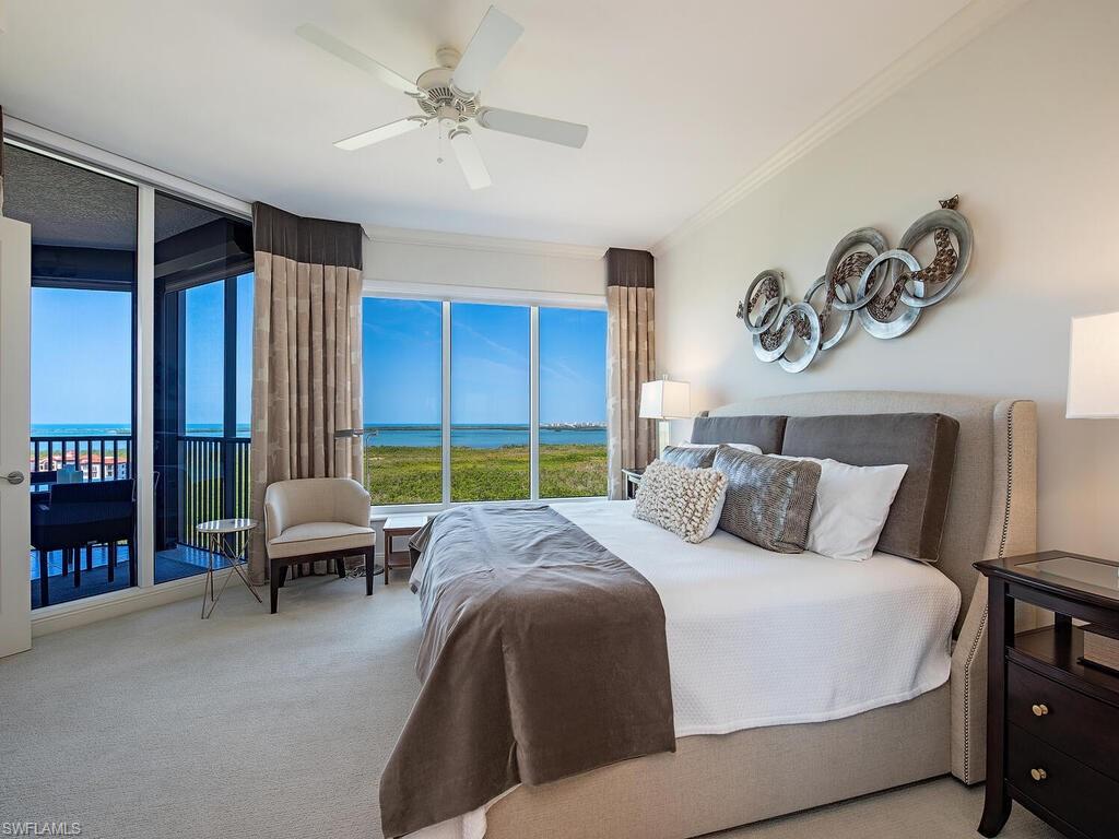It truly doesnu2019t get better than this in The Colony Golf & Country Club. This masterfully re-imagined 14th floor furnished residence combines a highly desirable and efficient three-bedroom, three-bath floor plan with breathtaking sunrise and sunset views over the golf course Bay& Gulf. Every detail in this unit has been elevated through a top-tier renovation.A private elevator lobby opens to gleaming marble floors throughout the main living areas. The open-concept layout highlights the stunning chefu2019s kitchen, featuring Taj Mahal quartzite countertops and backsplash, contemporary dark wood custom cabinets Sub-Zero refrigerator, Wolf oven and microwave, and a Miele built-in coffee system. The spacious living area flows seamlessly to the screened lanai, equipped with impact-rated windows and electric hurricane shutters, creating the perfect indoor-outdoor retreat.The expansive primary suite offers two walk-in closets and a spa-inspired bath with dual vanities, a floating soaking tub, and a dramatic stacked-stone accent wall. Large picture window and sliding doors open to the lanai, providing uninterrupted golf and water views. Two guest bedrooms complete the layout, one with an en-suite bath and the other with convenient access to a full bath nearby. Both guest rooms (one converts to den/office) open to east facing open balcony to enjoy the sunrise. Additional features include a built-in entertainment system, California Closets, and silhouette window shades throughout.Residents enjoy full access to Florenciau2019s exceptional amenities, including a grand lobby, fitness center, theater, social room, and two guest suites. As part of The Colony and Pelican Landing, owners also enjoy membership to the Bay Club, offering two levels of waterfront dining, a private 34 acre island beach accessible by water taxi, tennis and pickleball, kayaking, vibrant social programs and optional golf membership at The Colony Golf Club. All of this is set within a secure, gated community just minutes from Bonita Springs and Naples finest dining, shopping, and Gulf beaches.
