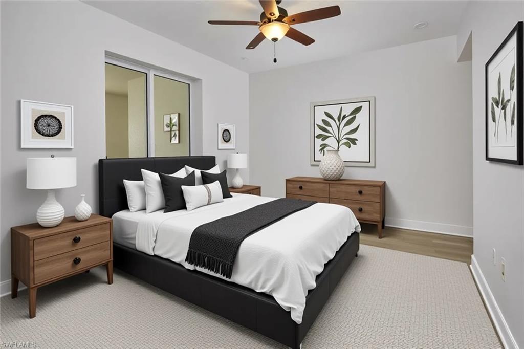MAGNIFICENT VIEWS. Imagine coming home to the breathtaking beauty of stunning sunsets and panoramic views of Estero Bay, all from the comfort of your exquisite 4th-floor residence in Castella at The Colony at Pelican Landing. This home is adorned with light plank flooring throughout the spacious bedrooms and closets, and freshly painted walls- a clean canvas. The open floor plan boasts high 10 foot ceilings and impact-resistant windows and doors that ensure both elegance and safety. The expansive floor-to-ceiling sliding doors in the living room and primary suite lead to a magnificent screened-in lanai, where you can soak in pristine views of the Bay. Solid core doors throughout. The open-plan kitchen, equipped with granite countertops and stainless steel appliances, is perfect for entertaining. A GREAT VALUE! Donu2019t miss out on the chance to call this stunning property your own! Two car spaces in garage. Steps from the tropical style pool & spa and the best grilling station. Living at The Colony includes private membership to The Bay Club, formal and informal dining and events. Access to a private beach park, a huge tennis program, canoeing/kayaking, sailing club, bocce & pickle ball, the list goes on! Elective private golf options. The Colony is a quick jaunt to the airport and just a mile and a half to great dining and shopping.