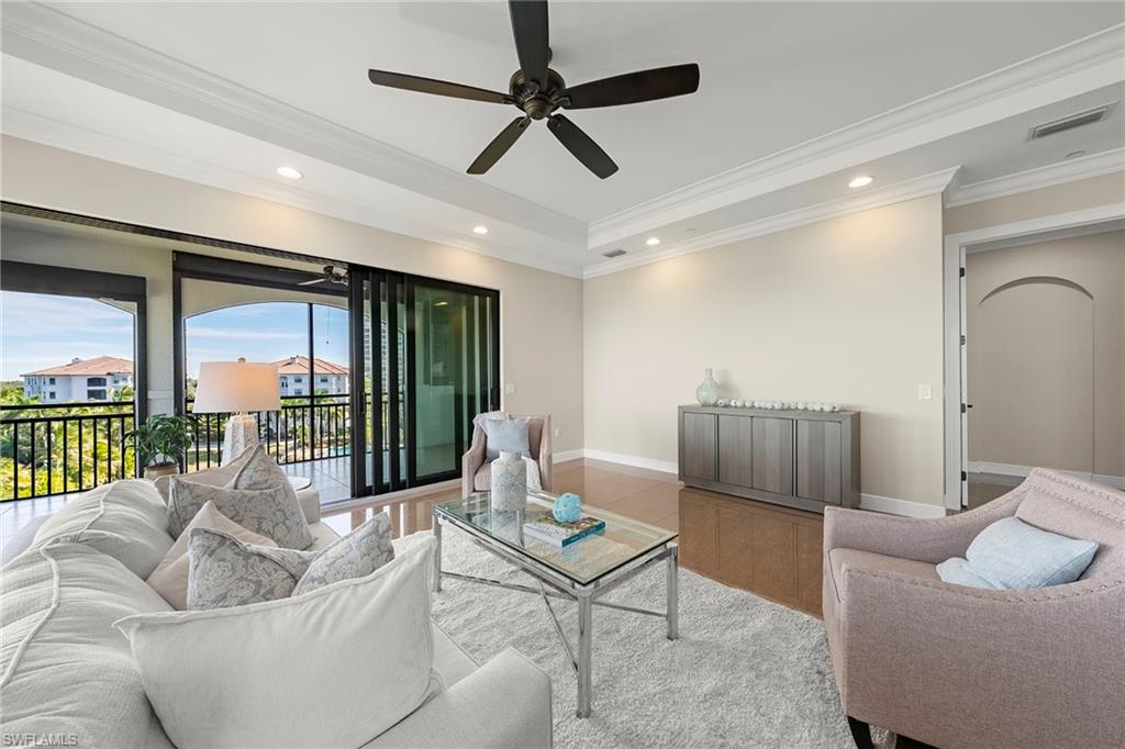 As you enter the foyer from the private elevator, you will be mesmerized by the view from this spacious open floor plan in your gorgeous Cielo residence, with no neighbors to be seen from your wrap around lanai. Prepare chef-inspired meals and host dinner parties in this beautiful kitchen with gas cooktop. Relax with your morning coffee in the spacious breakfast room with a built-in for your coffee and espresso station. Host guests in your spacious living and dining area or add a seating area in this flexible floor plan! Enjoy summer evenings on your large lanai with a wraparound seating area and negative-edge sliders that bring in the outside. Storm protection provides comfort when away. A separate primary suite, with soaking tub and separate shower and custom designed primary closet, provides a respite from a long day on the golf course. Two guest suites with en-suite baths ensure complete privacy for your guests and a separate den and powder room offer work-from-home space or additional area for watching TV. Private parking with two spaces and ample storage. Cielo offers a beautiful pool with a relaxing lake view. Residents at The Colony enjoy access to The Bay Club, offering private waterfront dining and a private beach island just a short boat trip away. Shopping and dining are available at Coconut Point and Southwest Florida International Airport is a quick 30-minute drive away. Live your best luxury lifestyle with a private island beach, fitness, tennis, pickleball, bocce, canoe and kayak park, and more, all included for no additional fees. Two golf courses offer optional membership opportunities, so please contact the membership directors for pricing and availability.
