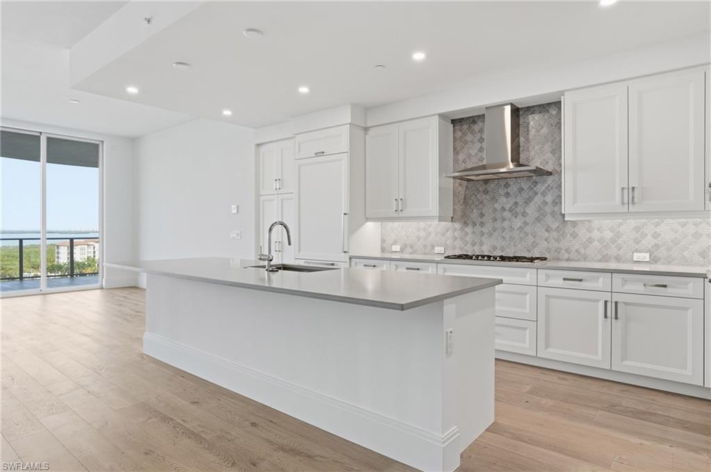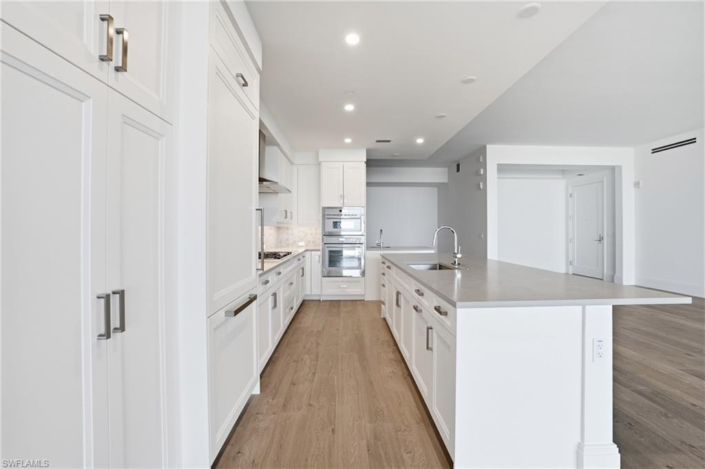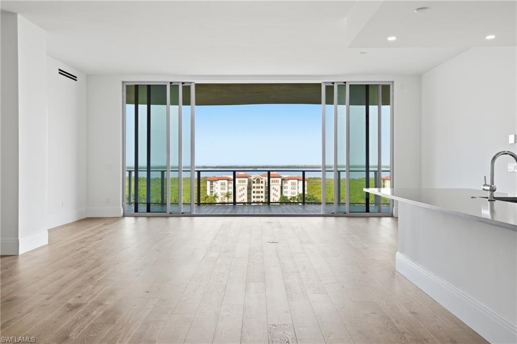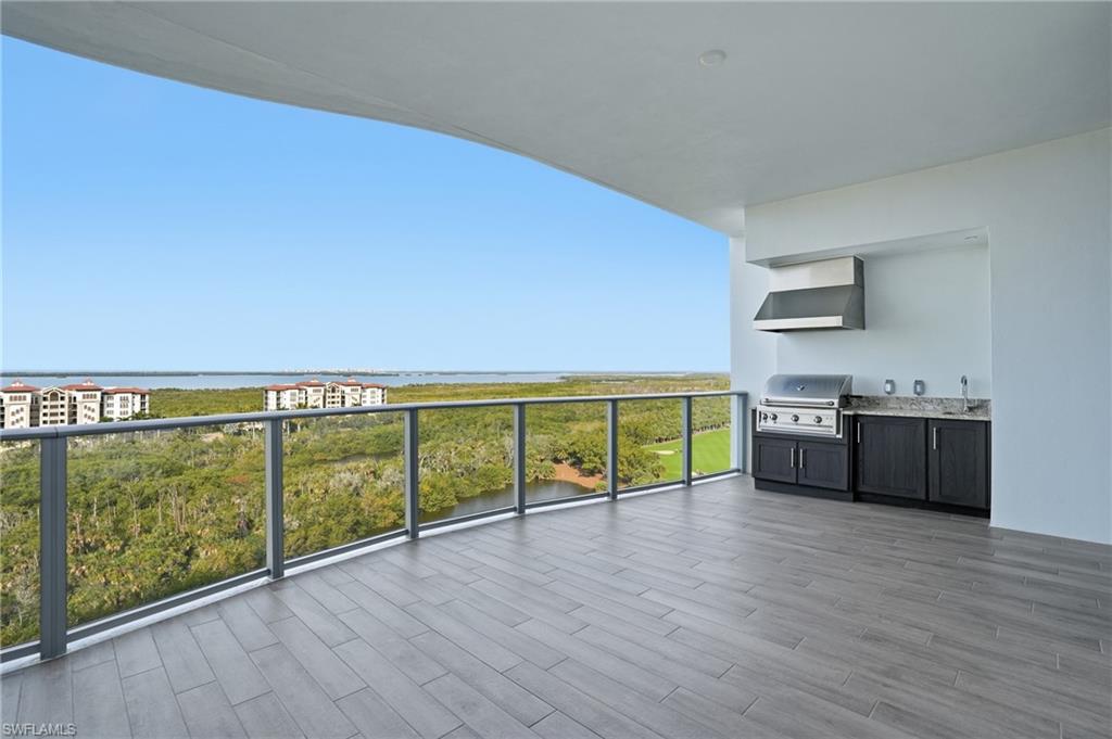 Welcome to a brand-new coastal residence at Infinity at The Colony, where elevated design, breathtaking Gulf and water views, and a resort-style lifestyle come together effortlessly. Positioned high above the shoreline, expansive glass frames sweeping vistas and fills the home with natural light from the moment you arrive.Step inside via your private elevator and into a bright, contemporary interior with soaring ceilings and an open layout that lives beautifully, whether you are hosting or enjoying a quiet evening at home. The upgrades feel intentional and refined throughout. Wood flooring runs through all bedrooms, bringing warmth and continuity to the private spaces. In the kitchen, upgraded quartz surfaces create a clean, polished statement, complemented by a tiled backsplash that adds a tailored coastal finish. A matching quartz wet bar makes entertaining seamless, while J-boxes above the island are already in place, ready for the pendant lighting that completes the designer look.Glass doors open to an oversized lanai with a built-in grill, inviting you to dine al fresco, unwind with morning coffee, and take in the changing sky over the water. A second private outdoor space adds even more flexibility for lounging, hosting, or simply enjoying the breeze.Beyond your front door, Infinity offers a full suite of amenities designed for comfort and ease, including multiple resort-style pools, a poolside restaurant, a memberu2019s lounge, a game room, and a state-of-the-art fitness center. Recreation continues with pickleball courts and a PopStroke-style golf experience designed by Tiger Woodsu2019 architect, plus thoughtful pet amenities like an on-site dog spa and dog park. Evenings are elevated on the rooftop terrace with an outdoor kitchen and firepits, all complemented by 24-hour concierge service and access to The Colonyu2019s private island beach park and the waterfront Bay Club.This is coastal luxury with intention: upgraded finishes, expansive outdoor living, and a curated amenity lifestyle that feels effortless every day.