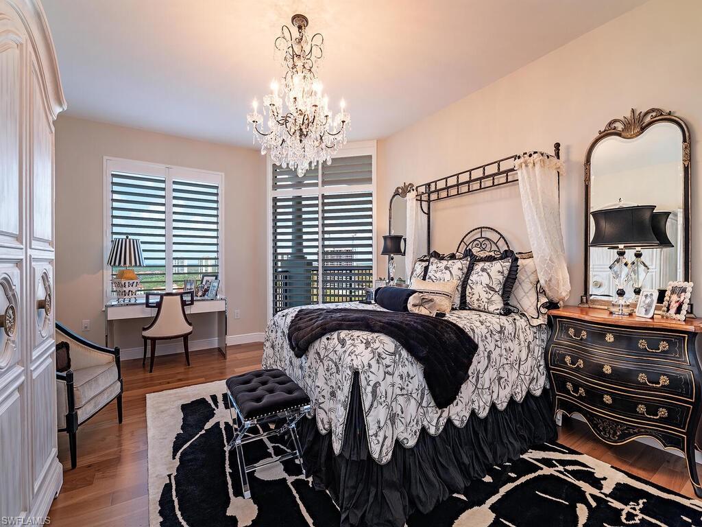 Welcome to Unit 1701, a magnificent re-imagined La Scala premier sky residence within The Colonyu2019s exclusive waterfront enclave. This extraordinary home sets a new standard for refined coastal luxury.A private elevator opens to a dramatic foyer framed by striking black double doors, revealing nearly 4,100 square feet of impeccably designed living space. Including four expansive lanais and balconies, the residence offers more than 5,000 square feet for indooru2013outdoor living. The flexible floor plan accommodates three or four ensuite bedrooms, each capturing sweeping views of the Gulf of America, Estero Bay, and the surrounding coastline.Bathed in natural light, the home features floor-to-ceiling glass, soaring 9-foot-8-inch ceilings, and a coveted southwestern exposure. The expansive great room flows seamlessly into the formal dining area, where the removal of interior walls creates a sophisticated, open-concept living environment ideal for both entertaining and everyday living.The custom chefu2019s kitchen is a masterpiece, showcasing an expanded layout with an oversized island and seating, timeless cream toned cabinetry, porcelain countertops, illuminated glass display cabinets, and premium Sub-Zero refrigeration including separate refrigerator, freezer and a dedicated wine tower.The primary suite is a private retreat with breathtaking Gulf views, masterfully redesigned bath, and custom walk-in closet. Etched-glass French doors lead to a spa-inspired bath featuring all porcelain floors, shower and counters, bespoke vanities, a walk-through shower, and a striking circular ceiling detail. Two additional guest suites and a den or optional fourth bedroom are thoughtfully positioned to ensure privacy and comfort.La Scala has undergone significant recent enhancements, including a new roof, renovated garage, refreshed exterior stucco & exterior paint and beautifully updated landscaping. Residents enjoy an exceptional collection of amenities spanning two levels, including a grand two-story lobby with twin marble staircases, social and billiard rooms, fitness and game rooms, and a tranquil resort-style pool. A 24-hour staffed front desk provides effortless service and peace of mind.Colony /Pelican Landing amenities include: Waterfront Bay Club dining on two levels, 34-acre island beach park, Tennis, Pickleball, Kayak park and optional golf at Colony Golf ClubUnit 1701 at La Scala offers a rare opportunity to experience unparalleled elegance, space, and sophistication in one of The Colonyu2019s most prestigious waterfront addresses.