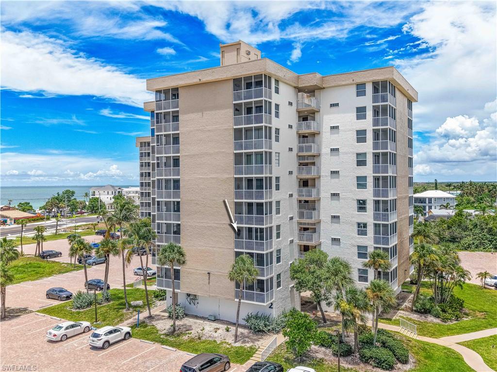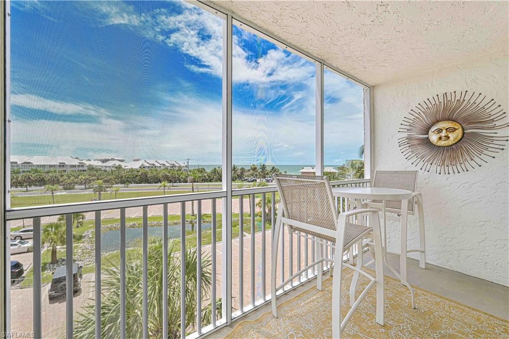 Nestled in the heart of Bonita Springs, this exquisite waterfront property offers a quintessential blend of coastal living and modern convenience. Surrounded by Bonita Beach and beautiful homes, this residence boasts breathtaking Gulf views from the screened lanai, where endless sunsets transform the sky into a canvas of vibrant colors. Just across the street lies direct access to the pristine beach with the inviting aqua green waters of the Gulf of Mexico beckoning you. Inside, the kitchen features all stainless appliances, solid wood cabinets, granite countertops, and a chic subway glass backsplash, all accentuated by elegant crown molding. The home is thoughtfully updated with hurricane windows throughout, ensuring peace of mind. Community amenities abound, with two sparkling pools, upcoming tennis courts, and convenient boat docks available for lease. For leisure and convenience, you're mere moments from outlet shopping, grocery stores, and charming local restaurants, making everyday living a breeze. Embrace the harmonious blend of relaxation and recreation in this unparalleled coastal sanctuary.This unit has a good rental history and tenants that come back every year!!