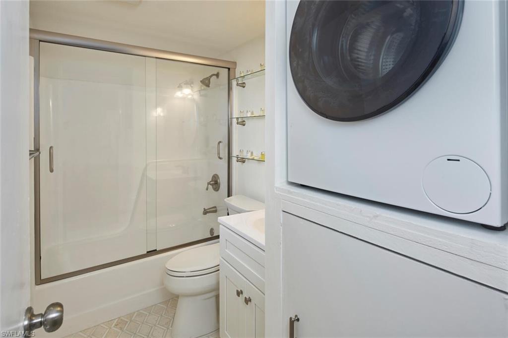 Experience coastal living at its finest in this beautifully updated 10th-floor studio efficiency across the street from Bonita Beach. Boasting stunning northwest-facing views, this top floor unit captures breathtaking sunsets over the Gulf of America and peaceful serene views of Fish Trap Bay.This turnkey residence has been thoughtfully upgraded, featuring hurricane-impact windows and slider door for peace of mind, along with a newer A/C and water heater (just 2 years old). Inside, youu2019ll find stylish vinyl Peruvian Walnut flooring, fresh paint throughout, and a bright, modern feel.The kitchen is equipped with new appliances, granite countertop and white shaker soft close cabinets. While the updated bathroom includes a new vanity and floor tile for a clean, contemporary look. Rounding out of the list of upgrades include new ceiling fans, shelving systems in the closets, plus a convenient in-unit washer/dryer combo adds to your everyday ease.Building modifications have been in full swing with new roofs, complete concrete restoration, freshly painted exterior, new generators and more! Amazing location just steps from the beach and several restaurants, shops and parks at yor fingertips. Whether youu2019re looking for a beachside retreat, investment property, or low-maintenance getaway, this move-in-ready condo offers comfort, style, and unbeatable views from high in the sky in a prime location!