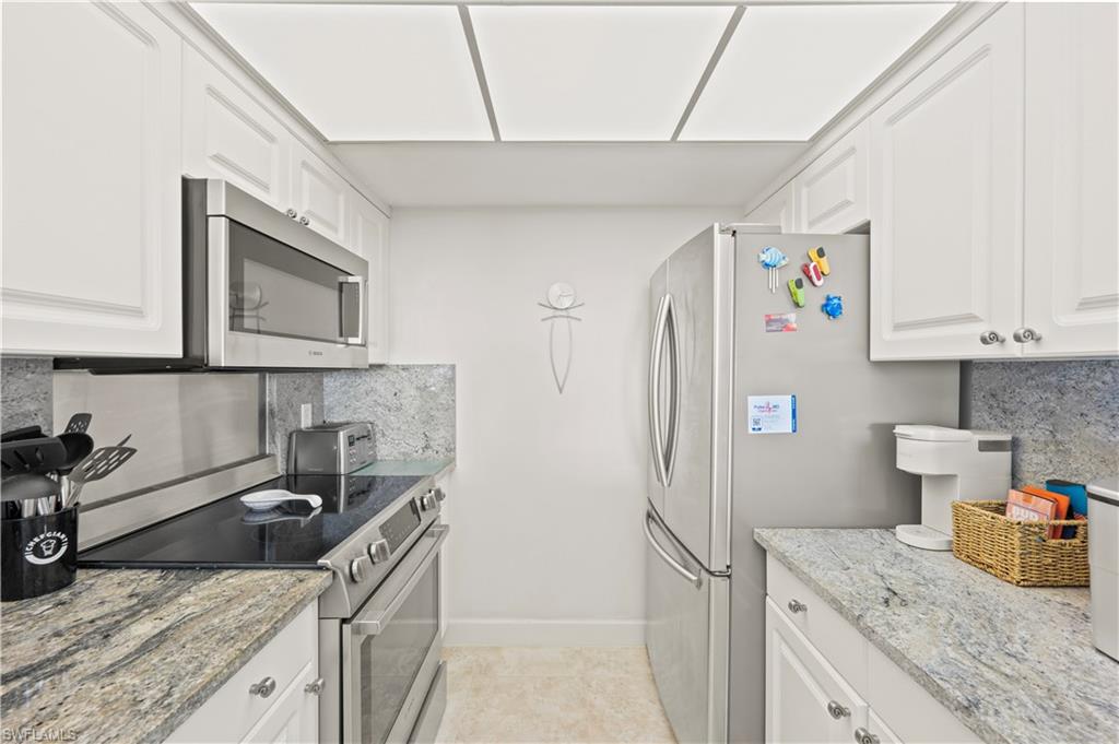 Imagine waking up to the sound of gentle waves lapping at the shore, just steps from your door. This charming 5th-floor condo in Casa Bonita II sits right on the soft sands of Little Hickory Island Beach in Bonita Springs, offering that true beachfront escape you've been dreaming of. Hop off the elevator, and you're on the sugar-white sand beach in moments. When you feel like kicking back inside or on your lanai with a cool Gulf breeze, those soothing waves set the perfect vibe. And don't get us started on the sunsetsu2014they're the kind that make you pause and appreciate the magic of paradise every evening.Inside, this unit has been tastefully updated to feel fresh and inviting. The kitchen shines with stainless steel appliances, sleek granite countertops, and a full-height backsplash that ties it all together. Both bathrooms are nicely refreshed, featuring a roomy oversized shower in the master. In-unit laundry keeps things simple, and the building has seen some great upgrades to amenities and exterior. Plus, it's turnkey furnished, so you can move right in and start living the good life.This unit also offers added peace of mind with an impact-resistant front door and window, along with electric shutters on the lanai for storm protection. Elevated on the 5th floor, it has remained unaffected by any surge during past storms.Nestled in the heart of coastal Bonita Springs, this location puts you close to everything you need and all the fun. Head north to wander the peaceful trails of Lovers Key State Park, then hit the energetic scene at Fort Myers Beach or explore downtown Fort Myers. Southbound, you've got Bonita Beach and the upscale charm of Naples. Shopping, dining, arts, outdoor adventures, and nightlife? All within a quick 30-minute drive in either direction. It's the ideal central location for beach lovers who want convenience without the hassle.Priced right and ready for your occupancy, this little piece of heaven is callingu2014grab your suitcase and come claim your tropical haven in Southwest Florida!
