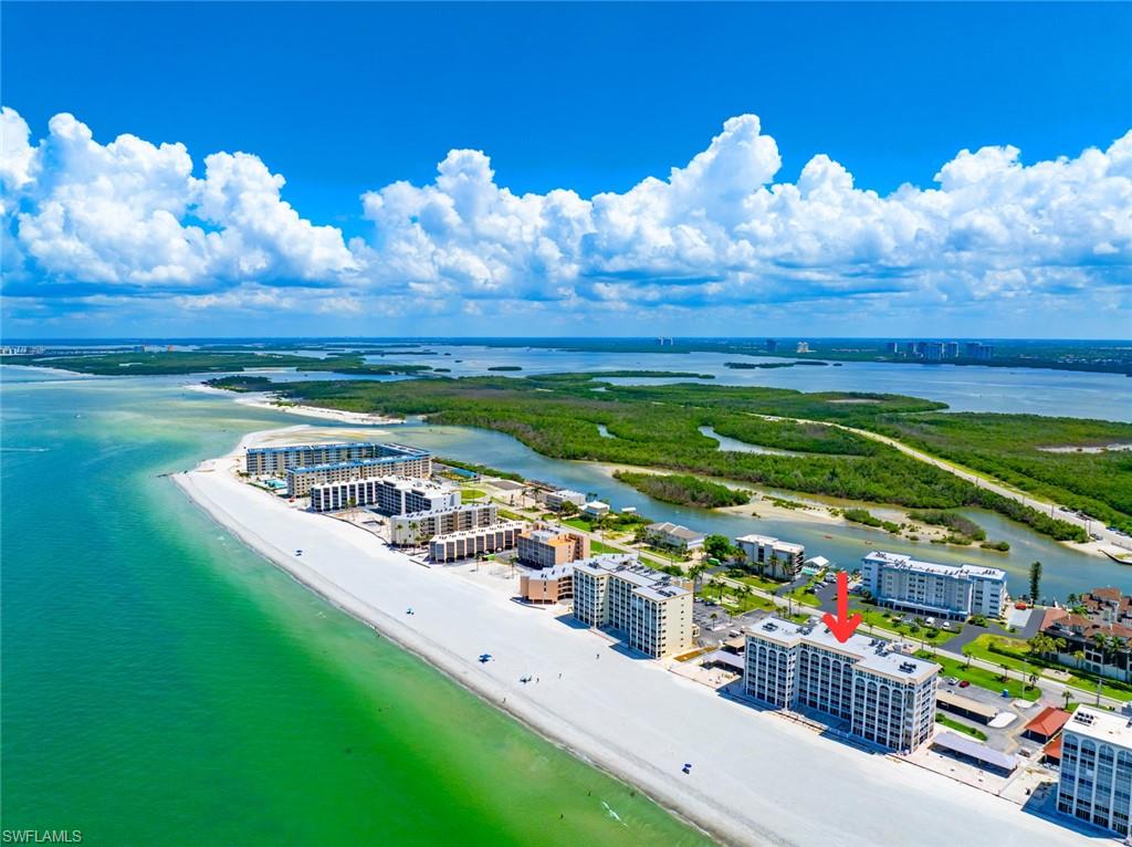 Welcome to a lovely coastal retreat. The exclusive opportunity to own a piece of paradise in one of the most coveted condominium high-rise buildings on Bonita Beach! Casa Bonita Grande, remains a premier address in Southwest Florida, just steps away from the Gulf! Following a recent beach nourishment project, the propertyu2019s prime gulf frontage is even further strengthened, ensuring this stunning residence remains a rare gem. Step outside to witness a natural wonderland where beaches serve as vital habitats for sea turtles, shorebirds, wading birds, and an abundance of marine life. Enjoy your morning coffee or evening drinks on the double width lanai, with the beautiful beach on your horizon. This 4th-floor unit is ideally positioned in the building, offering breathtaking sunset views! Step into this light and bright unit and immerse yourself in a beachfront lifestyle. In 2020 upgrades to bathroom cabinetry, floor tiling, all walls completely decorated. A/C replaced in 2022. Furnished in Baers Coastal range furnishings, fully equipped kitchen, all included, just bring your suitcase!Located at the quiet cul-de-sac of the north end of Hickory Blvd. Casa Bonita Grande, under a new roof, new electrical room, new build lifts, offers a community room with kitchen area, fitness center all newly equipped. Outside, a renovated beachside pool and spa, second floor sundeck, gas grill, multiple outdoor sun decks.Casa Bonita Grande is financially solid with fully funded reserves. Experience the best of Southwest Florida livingu2014right at your doorstep.