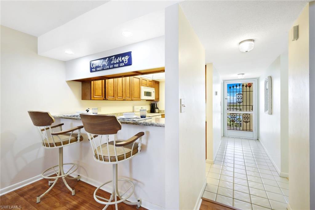 Perched on the 6TH FLOOR, this charming beachfront residence delivers sweeping Gulf views and unforgettable sunsets from the peaceful north end of Bonita Beachu2014where the beach feels quieter. Panoramic western views stretch endlessly across the sand and sea, creating a front-row seat to nightly sunsets. The spacious GULF-FRONT lanai functions as true additional living space, featuring hurricane-impact sliding glass doors and screens that, when opened, invite in the calming sounds of the surf. Inside, the condo offers a generously sized kitchen with bar-height seating, a Bosch dishwasher, and 2022 water heater. The primary suite is a standout, boasting direct Gulf views, a private en-suite bath, and abundant storage. The building recently completed a brand-new roof. Whether youu2019re seeking a personal beachfront retreat or a strong vacation rental opportunity, this unit checks all the boxes. Additional conveniences include assigned non-covered parking plus ample guest parking. Casa Bonita II is ideally positioned on the tranquil north end of Bonita Beach and offers residents a beachside pool, grilling area, community room, shuffleboard, and moreu2014everything you want, nothing you donu2019t.