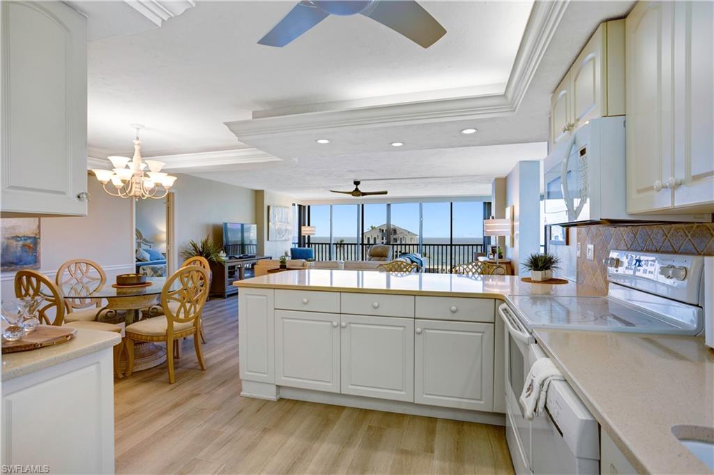 PERFECTION: LOCATION, COMMUNITY, RENOVATION...SEA ISLES 4C: BEACH & BAY VIEWS! ~THE ALL NEW SEA ISLES IS WAITING FOR YOU AND MOVE-IN READY WITH NEW: ROOF, ELEVATORS, EXTERIOR PAINT, TILED LOBBY/HALLWAYS, REFURBISHED POOL, COMMUNITY ROOM, FULL OCCUPANCY and 6 BRAND NEW PICKLE BALL/TENNIS COURTS! ~Nestled on acres of tropical, lushly landscaped bayside property, with deeded beach access, across the street from Bonita Beach, surrounded by Gulf & Bay, steps away to sink your toes in the sand & miles of beach walking! Docks may be available to purchase! Boasting STUNNING WESTERN GULF VIEWS from each room & EASTERN SUNRISE BAY VIEWS on wrap around enclosed balcony. Open your impact sliders complete with screens to let the gentle Gulf breezes into the condo.~In hues of blue & sand this is NOT YOUR ORDINARY RENOVATION: kitchen walls removed creating open concept, wide breakfast bar, tumbled marble backsplash, recessed/custom lighting/ceilings, crown molding & additional built-in cabinetry. Wood-like tile throughout, impact windows, new washer/dryer, & 2018 A/C. Bar/Wine Entertaining area/beverage fridge. ~Extra SF. in Main Bedroom & Great Room. Reconfigured Main Bath with extra cabinetry, custom tile shower/glass door, vanity/make-up area. Walk-in closet/custom closet system. ~Pet friendly, Lenient Rental Policy with rentals allowed 12 times per year/30 day minimum rentals. ~Steps from the beach, walk or bike to nearby Coconut Jacks, Docs Beach House, and a short drive to groceries, Coconut Pointe Mall, Miramar Outlet and only 30 minutes to the airport! ~WELCOME HOME TO SEA ISLES #4C!