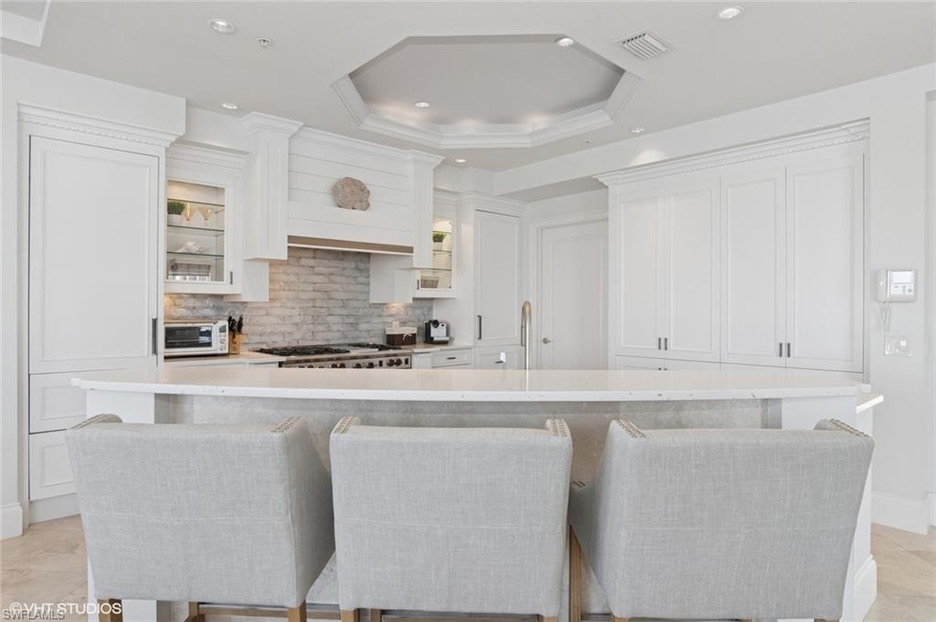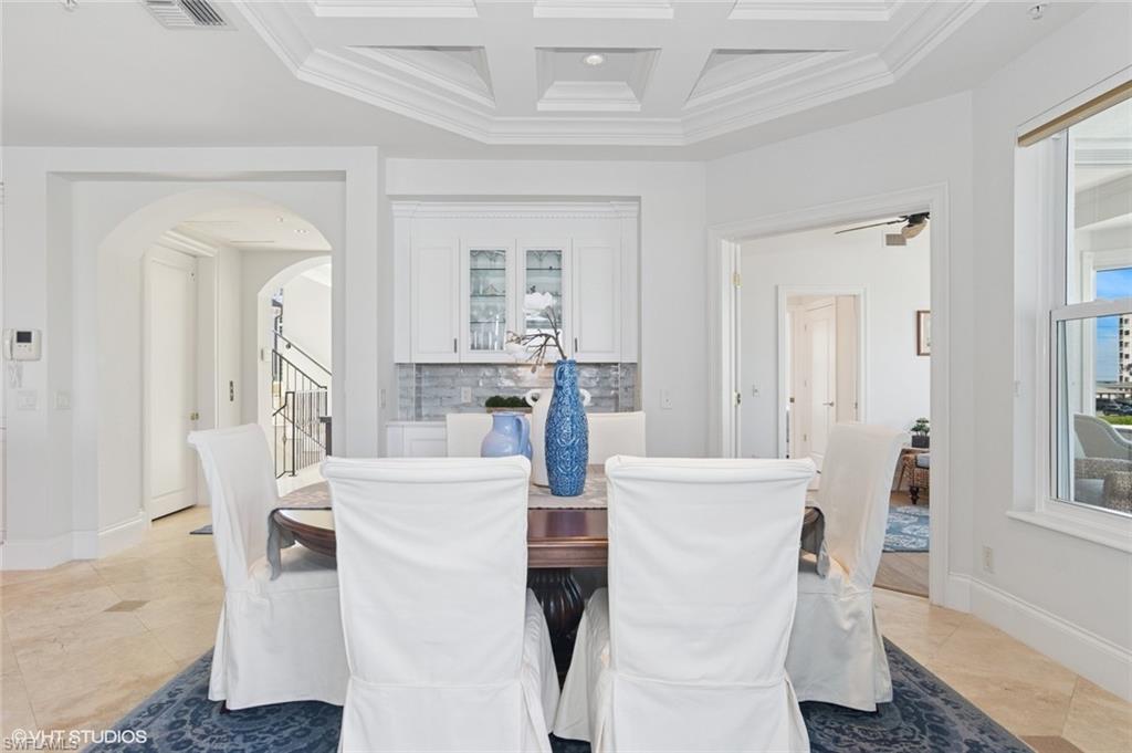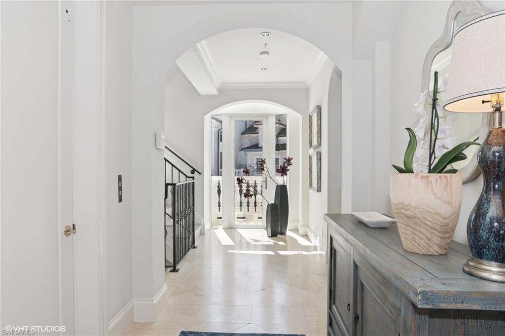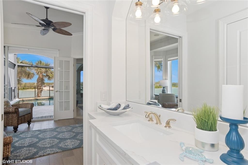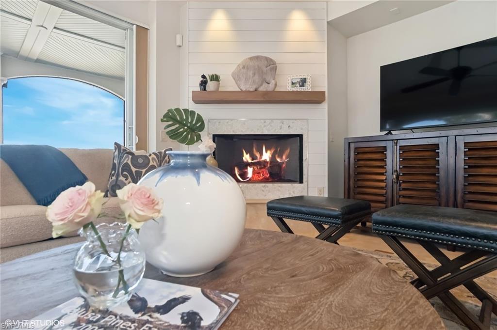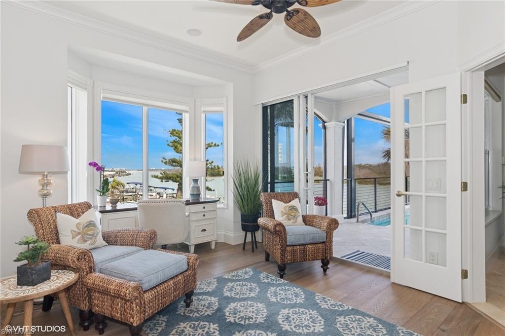 Elegant Coastal Retreat with Amazing Views & Direct Gulf Access. Wake up to breathtaking sunrises, unwind with stunning sunsets, and watch dolphins play in the bayu2014all from the comfort of your lanai. This stunning four-story home is situated in the small, gated community of Solenzara, one of Bonita Beachu2019s hidden gems, offering luxury coastal living just across the street from the pristine white-sand beaches, and a five-minute boat ride to the Gulf. From the moment you step inside, you are welcomed by a grand foyer with a private oversized elevator providing seamless access to all levels. The first floor features a spacious family room and generous storage space, perfect for coastal living essentials. Ascend to the second floor, where living and dining areas are bathed in natural light, showcasing panoramic views of the bay and Gulf. The living room with a gas fireplace adds warmth and elegance, while the kitchen is complete with a Wolf 48u201d gas range and double oven and Sub-Zero appliances. This level also includes an office, powder bath, laundry room and guest bedroom with a private ensuite bedroom. The third floor is home to the primary master suite, a true sanctuary featuring a walk-in closet, two private lanais, ensuite bathroom with dual vanities, a jacuzzi tub, separate shower, and a double-sided gas fireplace for ultimate relaxation. A second guest suite with a private balcony and ensuite bath completes this level. The fourth floor boasts a second master suite, offering complete privacy with an ensuite bath, walk-in closet and a private deck overlooking the Gulfu2014the perfect spot to enjoy morning coffee with a view. Designed for effortless indoor-outdoor living, this home features an outdoor kitchen, an elevated private pool and a hot tub, renovated in 2024. Upgrades also include a picture window screen enclosure, new pool equipment, new railings, new windows, new roof, exterior paint, and updated electrical systems. With insurance and flood coverage included in your quarterly HOA fees, and brand new generator, this home is ready for you to move in and start living the ultimate waterfront lifestyle. For added convenience, furniture is negotiable, and a private boat dock with a lift is available for purchase at an additional costu2014making this the ultimate waterfront lifestyle home Donu2019t miss this rare opportunity to own a luxury retreat in Bonita Springs!