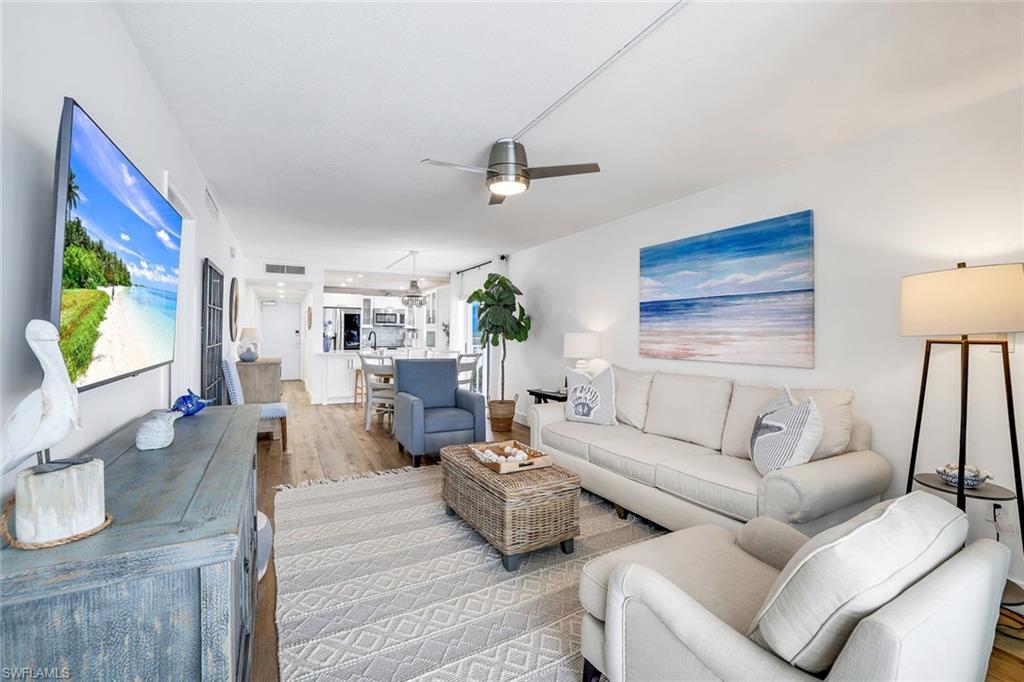 Beachfront Bliss with Spectacular Gulf Views on Bonita Beach! Wake up to the sound of gentle waves and end your day with stunning sunsets over the Gulf in this beautiful 2-bedroom, 2-bath beachfront corner unit residence. Offering panoramic views from Naples to Sanibel, this updated coastal-inspired getaway features soothing sea-glass tones, light color flooring and nicely appointed furnishings providing complete comfort and relaxation.Step out onto your screened lanai to watch dolphins and manatees play, boats drift by, and the sun melt into the horizon. Inside, enjoy an open floor plan with a bright kitchen, separate dining area as well as updated bathrooms, a spacious laundry room, and a beautiful guest bedroom. The Egret is being beautifully reimagined with lush tropical landscaping, a heated beachfront pool, community room with full kitchen and bathrooms, BBQ and more. The new pool deck is complete, the building freshly painted, and the new lobby ready to welcome you!Perfect for families, couples, or a friendsu2019 getaway, this condo offers the best of Bonita Beach livingu2014relax by the pool, stroll along the sugar-sand shore, or explore nearby waterfront dining.
