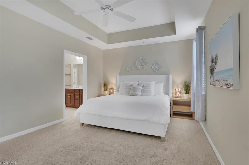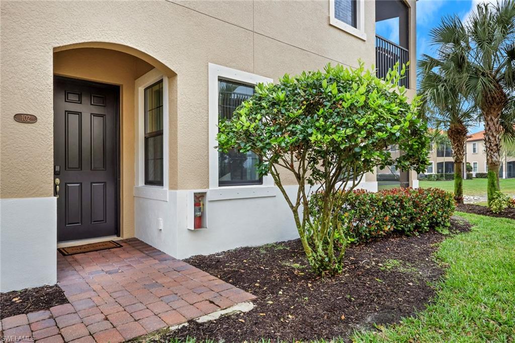 26141 Palace Ln #102 is a meticulously maintained waterfront residence located within the sought-after, low-fee gated community of Paloma in the heart of Bonita Springs. This rare first-floor end unit offers exceptional privacy and natural light, with windows on three sidesu2014an uncommon feature among condos in the area.The home features two bedrooms plus a den, a well-appointed kitchen with stainless steel appliances, granite countertops in both the kitchen and baths, and tile flooring throughout. High ceilings and oversized door casings enhance the open, airy feel, making the space live larger than its footprint. A one-car attached garage provides secure parking and additional storage.Step outside to the oversized screened lanai and enjoy peaceful lakefront views and vibrant sunset skies, creating the perfect setting for relaxation or entertaining.Paloma is an amenity-rich community offering a resort-style pool, fitness center, and illuminated sports courts. Ideally located near premier shopping, dining, and entertainment, and just minutes from beautiful Gulf beaches and RSW International Airport, this property combines convenience, lifestyle, and value in one exceptional offering.