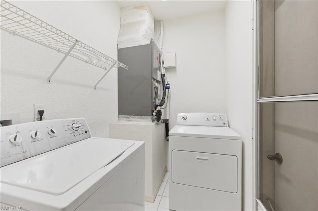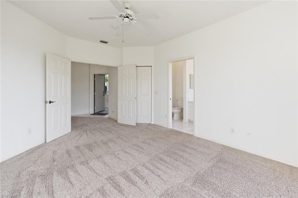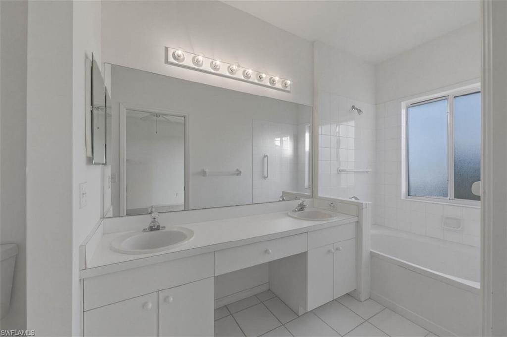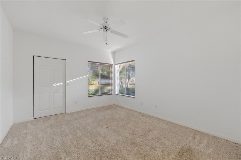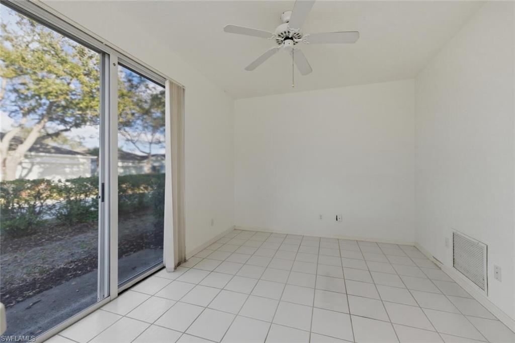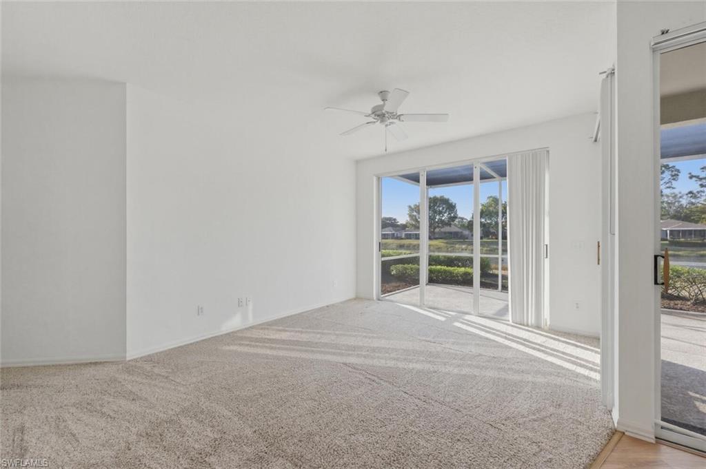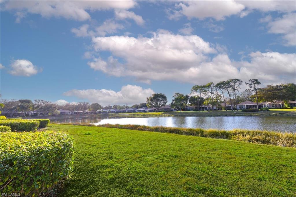 New quartz counter tops, fresh paint throughout and move-in ready! A great condo alternative located in the heart of Bonita. This charming 2-bed + den, 2-bath villa-style home offers 1,309 sq ft of comfortable living space. The open floor plan features 10-ft ceilings and a well-planned split bedroom layout. The owner's suite is complete with an en-suite bath with a soaking tub, dual sinks, walk-in closet, and water views from outside access sliding doors. The guest suite offers a spacious walk-in closet and direct access to the guest bath which has a walk-in shower. In the kitchen, you'll find tile flooring, a Bosch dishwasher, newer appliances, ample cabinet and counter space, and a convenient storage pantry. Enjoy meals in the open dining area or at the kitchen breakfast bar, both offering scenic water views. Relax in the attached cozy den or more formal living room. Outside, you'll appreciate the two-car garage, a screened lanai with water views, and extra storage space in an exterior closet, perfect for golf clubs or your beach chairs. The community amenities are steps away and include a clubhouse, pool, spa, fitness room, tennis court, bocce, and more. All this is just minutes from the exciting revitalization of downtown Bonita Springs, Gulf beaches, golf courses, RSW airport, shopping, dining, and entertainment. This is a perfect investment, starter, or downsizing home!