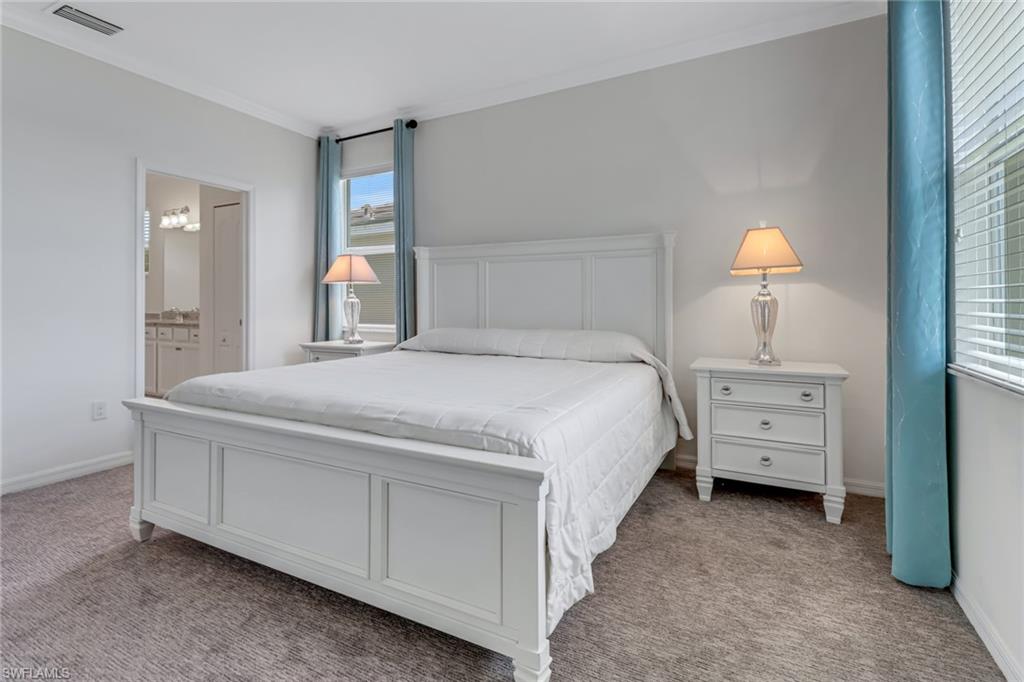 Unforgettable sunsets from the lanai of your recently-built, completely-updated and open concept home. A spectacular, spacious, eat-in kitchen with stainless steel appliances, exquisite granite countertops and recessed lighting. Pendant lighting illuminates the breakfast bar. The open floor plan displays a formal dining room and lounge-worthy family room, all made for entertaining, or just quite nights by the water. Huge sliding doors look out upon the lovely lake views. Three naturally-lit bedrooms with spacious windows and new carpet throughout! The soaking tub in the Primary Bathroom helps you unwind after a long day getting you ready for a relaxing night. A two-car garage and separate laundry room complete this move in condition home. Just minutes to beaches, restaurants and shopping. restaurants, shopping and a quick 20 minutes to the airport. This private gated community has so much to offer. Tennis courts, basketball