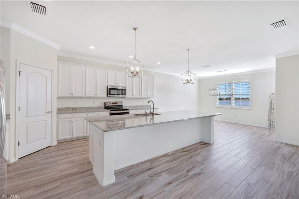 Welcome to Bonita Landing, a gated enclave of 219 residences that circle a massive 40+ acre lake. This immaculately kept lake front Summerville II floorplan offers 3-bedrooms + Den, 3-full bathrooms, and a 3-car garage. Notable upgrades include Dishwasher (2024), Microwave (2025) Water Heater (2025). Upon entering the grand foyer, you transition to a large kitchen and living/dining area which features spanning lake views. The split floor plan provides privacy, ample space, and comfortable stays for family and friends. The large master suite will not disappoint. Master bath offers dual vanities, walk-in shower, soaking tub, and 2-large walk-in closets. The oversized kitchen island and open floor plan provides the ability to entertain guests and accommodate family get togethers. This home boasts plank tile throughout, crown molding, light and bright colors, and plantation shutters. Transitioning through the large sliding glass doors brings you to a paver sitting area overlooking the large back yard and stunning lake views. The large back yard gives you the opportunity to build a pool oasis of your choice. Bonita Landing offers low HOA fees that cover cable, Internet/WiFi access, lawncare, landscape, and irrigation. Residents enjoy a fishing pier, picnic area, basketball court, tennis court, and play ground. This location gives you easy access to I-75, RSW Airport, Crew Flint Pen Strand Park/Trails, North Naples, and soon to be Midtown At Bonita.