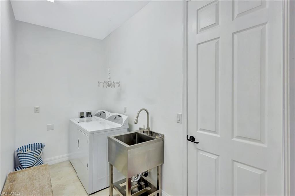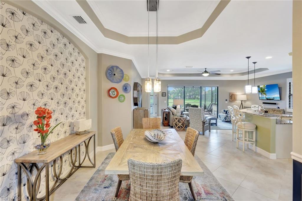 This beautiful 4-bedroom home includes a Golf Membership at the desirable Bonita National Golf & Country Club. Designed with comfort and style in mind, it features numerous upgrades.The driveway and lanai have been power-washed and sealed, and Super Screens have been added to enhance outdoor enjoyment while minimizing insects. The landscaping has been improved with two impressive large palms, adding a touch of tropical charm. Fresh paint in the lanai and foyer areas highlights elegant crown molding and a stunning chandelier, creating a welcoming entrance.Enjoy the atmosphere on the lanai, which is enhanced by a stylish lighted ceiling fan and custom landscape lighting that illuminates the surroundings for delightful evenings outside. The insulated garage door contributes to energy efficiency.Fresh paint throughout the home creates an inviting atmosphere, complemented by upgraded rheostat switches and convenient USB receptacles for modern living. Each room features crown molding and ceiling fans, enhancing both the aesthetic appeal and comfort. Custom closets and specialized lighting maximize organization and functionality.New air supply trunks and vent installations have been added in the primary bedroom to ensure optimal cooling for year-round comfort. The guest bathroom has been upgraded with elegant new vanity lights, a stylish custom mirror, towel bars, and additional hardware for convenience.The great room impresses with fresh sliding door window treatments, plantation shutters, and a ceiling fan, creating a warm and sophisticated setting, perfect for relaxation or entertaining. Concealed wiring for the TV maintains a clean and uncluttered look, allowing for a seamless flow in this elegant living space.This residence is more than just a house; it is a carefully designed sanctuary that harmoniously blends luxury living with leisure, making it the perfect retreat for you and your family.