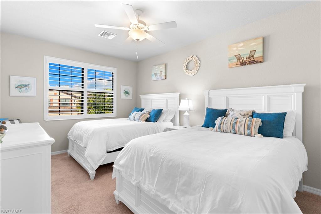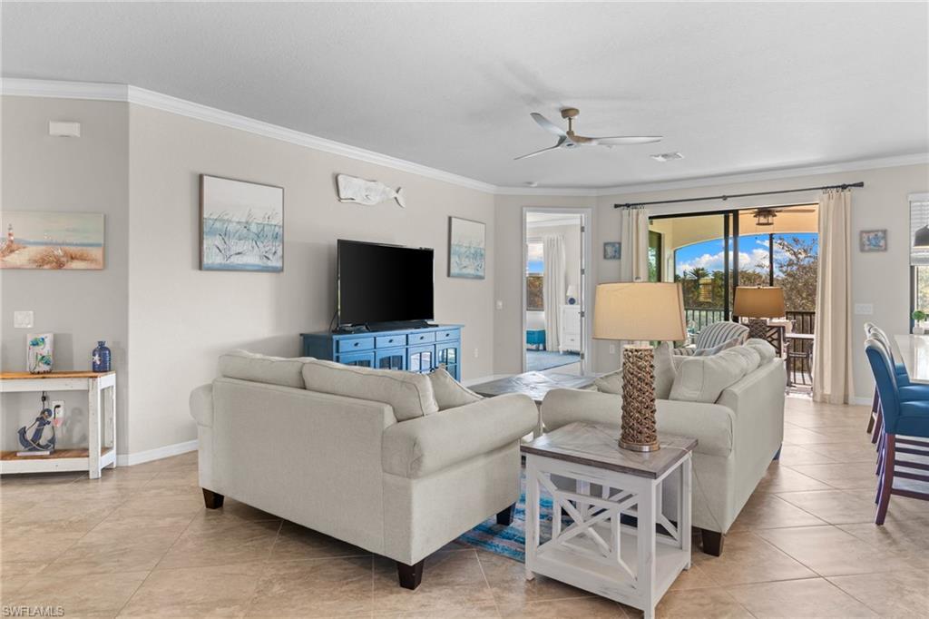 Social Membership-deeded second-floor coach home in Bonita National with tranquil lake views. Open-concept floor plan with quartz countertops and abundant natural light. 2u00bd-car garage provides space for two vehicles plus a golf cart. Resort-style amenities include tennis, attended fitness center, fitness classes, full-service spa, resort and lap pools, formal dining, and casual poolside dining, with bocce and pickleball coming soon to this vibrant community. Miles of sidewalks throughout the community support an active lifestyle. Easy access to North Naples and Estero, approximately 20 minutes to the beaches, and under 10 minutes to the Historic District of Bonita Springs with cafes, dining, festivals, and year-round events.