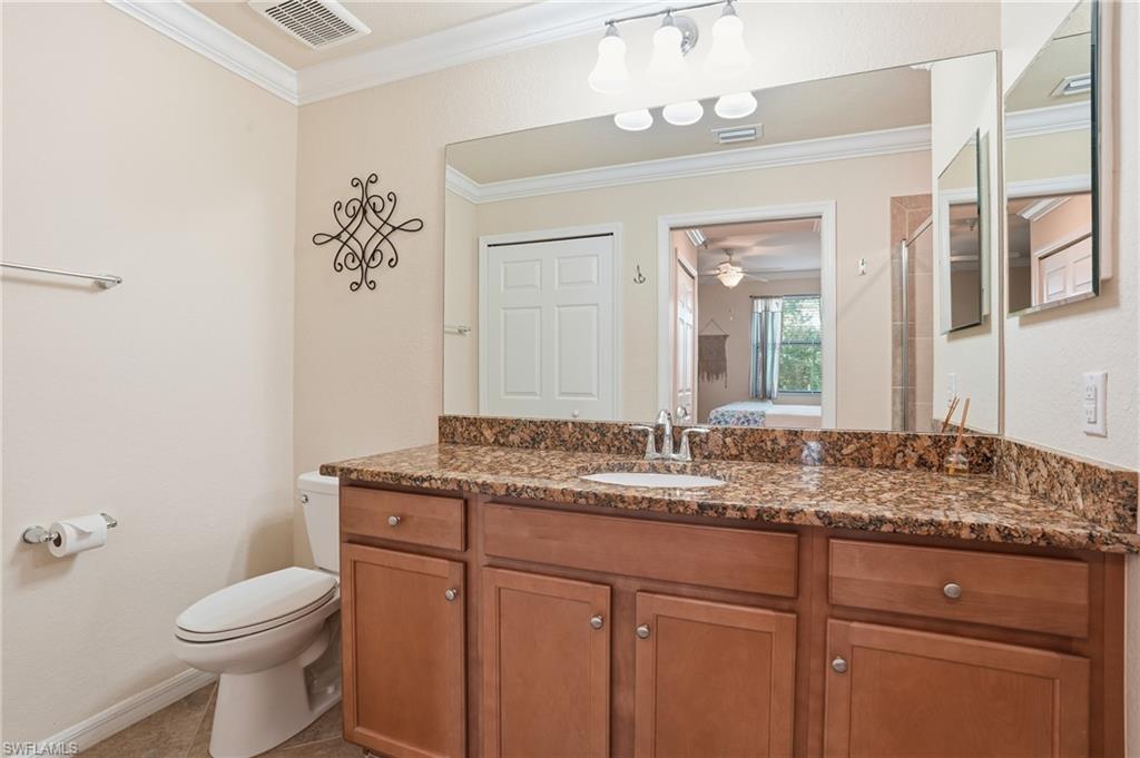 This rarely available second-floor end unit in Bonita National Golf & Country Club delivers a refined coastal lifestyle paired with breathtaking views of the golf course, the communityu2019s widest and most expansive lake, and the neighborhood pool. Turnkey furnished and meticulously maintained, the residence offers 2 bedrooms plus a den, 2 bathrooms, and nearly 1,300 square feet of light-filled living space. Diagonally laid tile and elegant crown molding enhance the main living areas, while the bedrooms feature plush carpeting. The generously sized kitchen is beautifully finished with granite countertops, stainless steel appliances, a breakfast bar, and a sunny breakfast nook, creating an inviting space for everyday living. Impact windows provide peace of mind, and in-residence laundry adds ease to daily routines. Step onto the screened balcony and take in the serene water and golf course vistasu2014an ideal spot to unwind and enjoy Southwest Floridau2019s tranquil ambiance. Bonita National is a gated, bundled golf community anchored by a Gordon Lewisu2013designed 18-hole championship golf course and an exceptional suite of resort-style amenities. Residents enjoy access to a full-service spa and salon, attended fitness center, clubhouse with dining, tennis courts, bocce, lap and resort pools, putting green, sauna, library, and more. Low-maintenance living includes cable, internet, water, sewer, and additional services, allowing more time to enjoy the lifestyle. Located just five miles east of I-75 on Bonita Beach Road, this sought-after community places the best of Bonita Springs, Naples, and Fort Myers within easy reach.