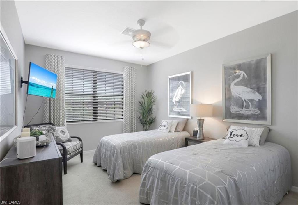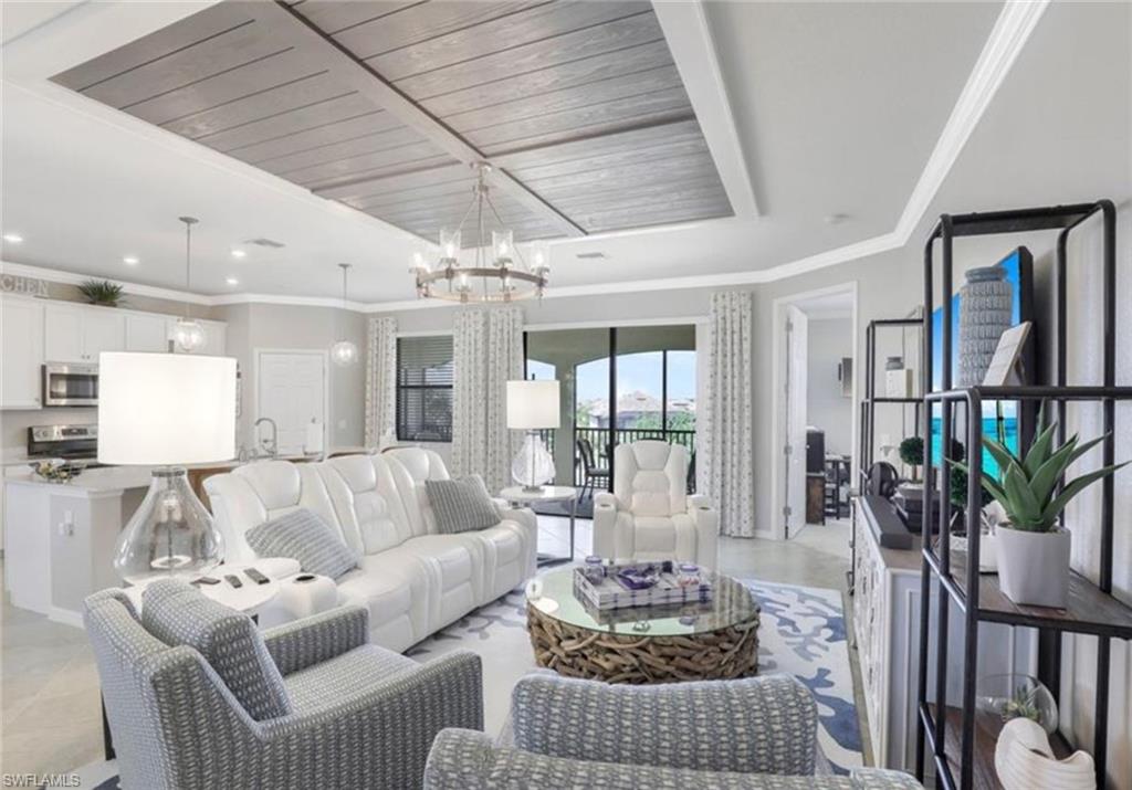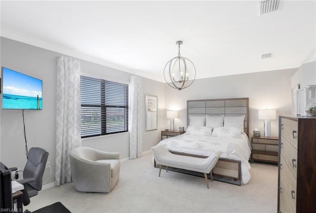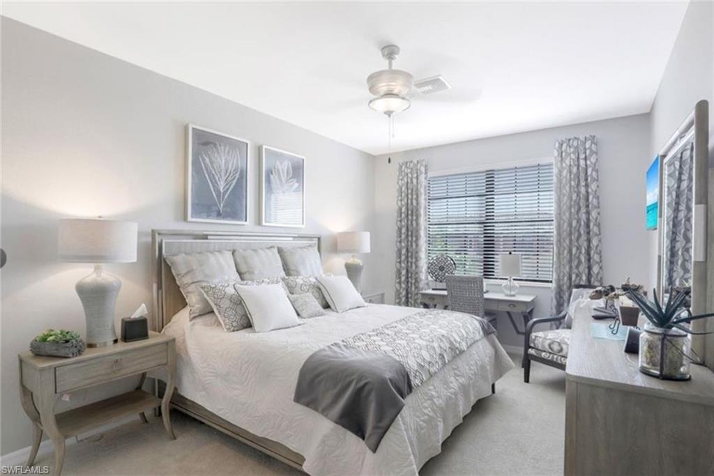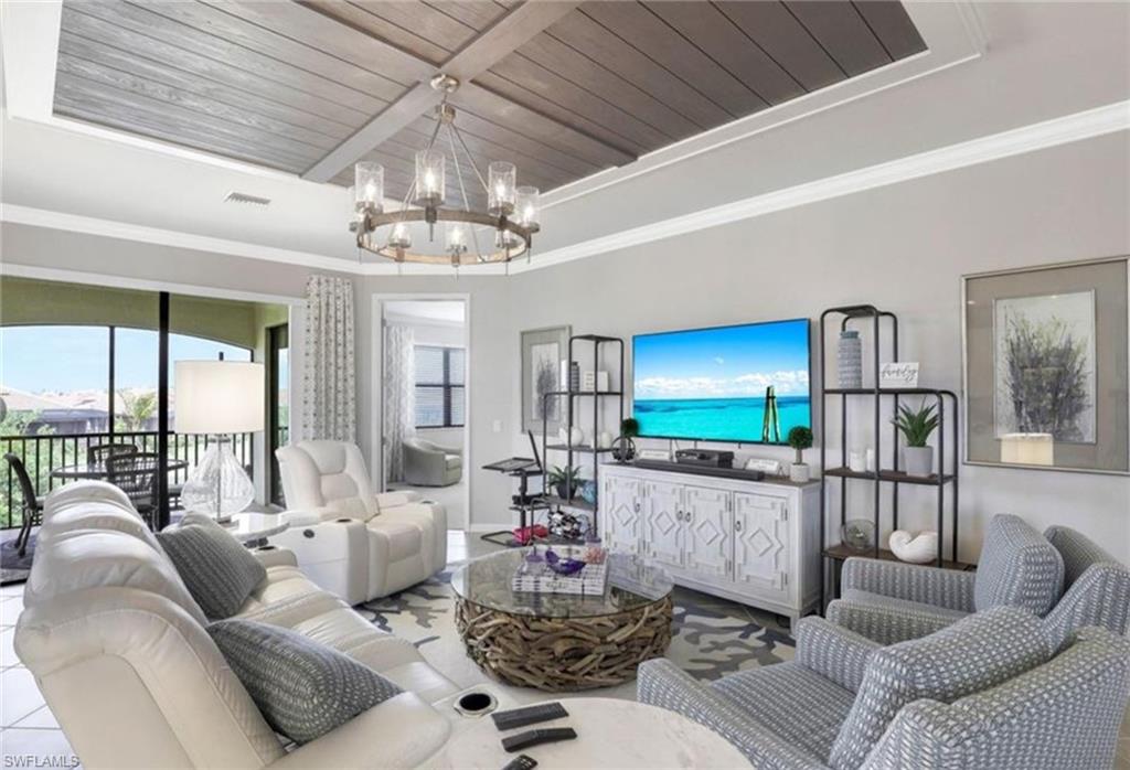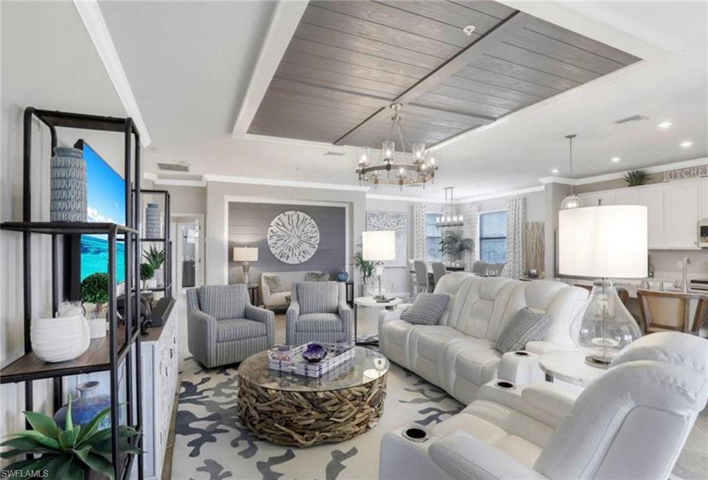 FORMER DECORATOR MODEL! Social Membership Included u2013 3 Month MinimumJust steps from Bonita Nationalu2019s incredible resort-style amenities, this stunning, professionally decorated luxury coach home is sure to impress! The residence features quartz countertops, white shaker cabinets, stainless steel appliances, oversized tile laid on the diagonal, designer furnishings and accessories, and many additional upgrades.This gorgeous second-floor Bay Creek former coach home model at Bonita National is the largest multi-family floor plan in the community and offers an unbeatable location directly across from the clubhouse and amenities. As an end unit with no neighboring building to the side, it provides breathtaking wraparound water views and enhanced privacy.The home welcomes you with an elegant two-story foyer and private first-floor garage entry. Upstairs, the spacious great room features a tray ceiling and flows seamlessly into the formal dining area and upgraded kitchenu2014perfect for entertaining.The oversized primary suite offers private access to the screened lanai, large walk-in closets, and a luxurious en-suite bath with dual vanities and an oversized walk-in shower. The split-bedroom floor plan provides ideal privacy for guests.Enjoy the convenience of being within walking distance to the clubhouse, where youu2019ll find formal dining, a resort-style pool, and world-class amenities.HURRYu2014THIS ONE WONu2019T LAST!
