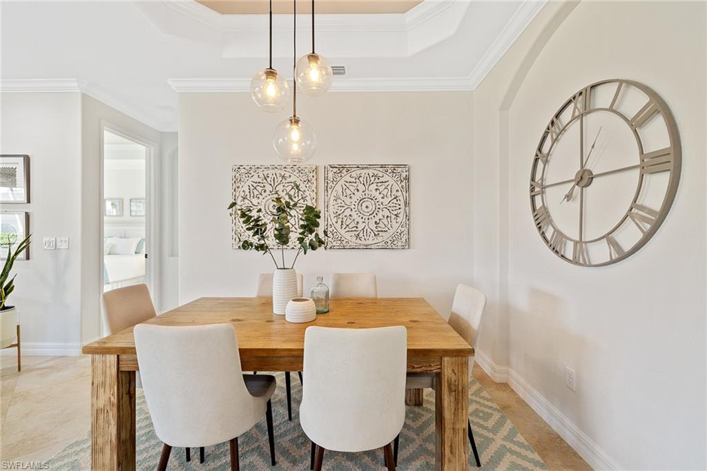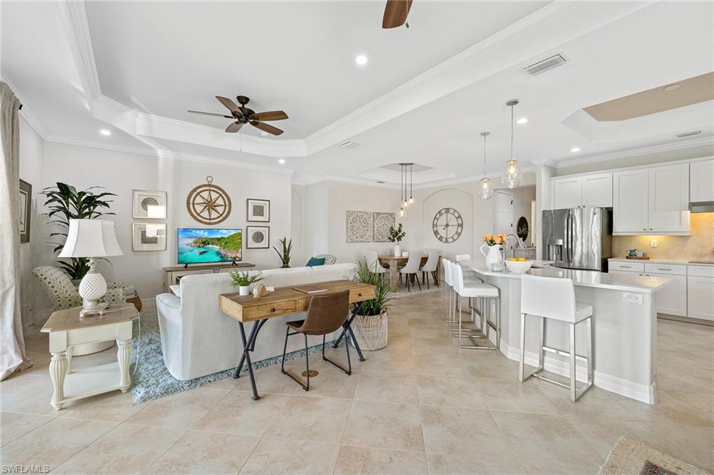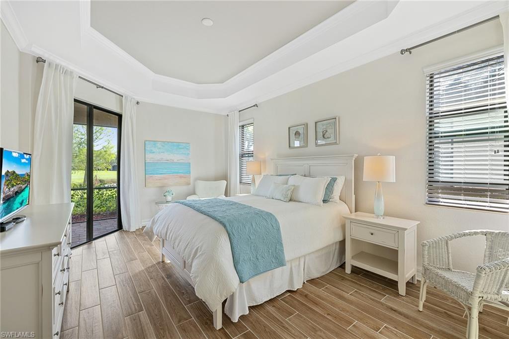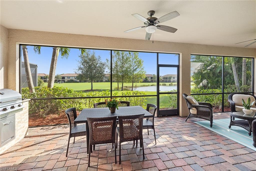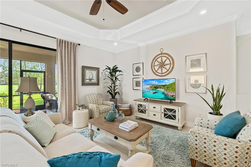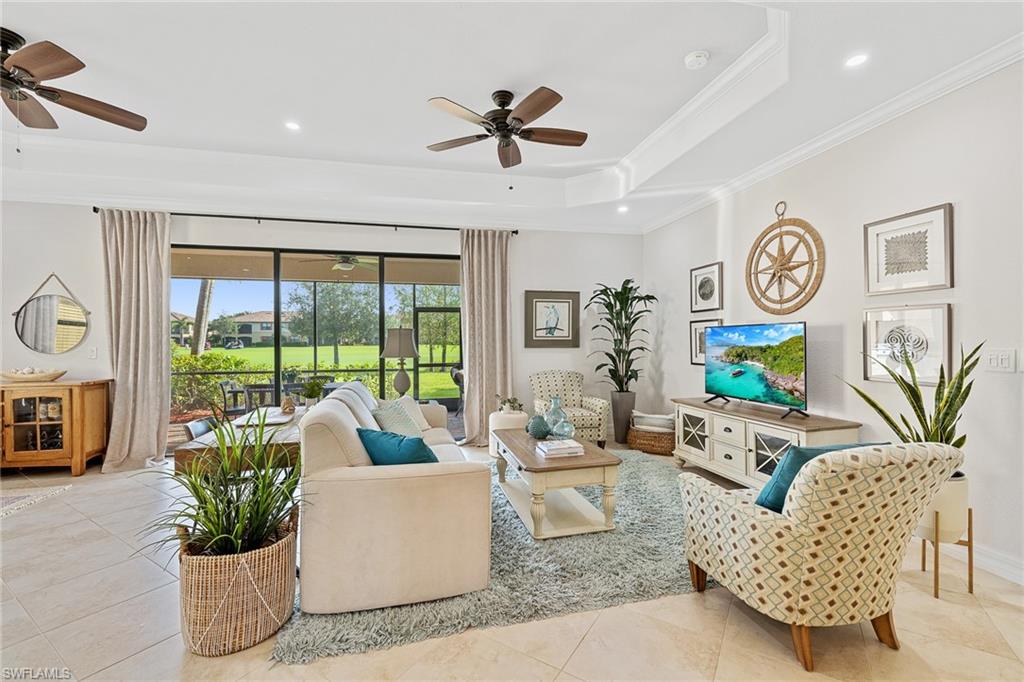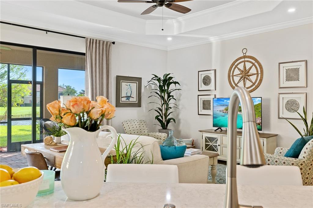 A FULL GOLF MEMBERSHIP IS AVAILABLE FOR TRANSFER. The property is rented for the 2025 season. Experience southern charm in the furnished `Victoria` floorplan home located in SWFL. Situated near Bonita Beach, restaurants, shops, and RSW Airport, you can enjoy serene sunrises over the pond and golf course from your lanai. Inside, the home boasts diagonal tile in shared spaces and plank tile in the bedrooms. The modern kitchen features quartz countertops and an island, complemented by top-of-the-line appliances. Other features include tray ceilings, crown molding, and impact-resistant windows and doors. The spacious lanai is equipped with a half bath and a grill. Bonita National offers amenities such as a resort-style pool, waterfall, bar and grill, championship golf, a clubhouse, dining, a pro shop, locker rooms, 8 tennis courts, a spa, and a fitness center. Dive into luxury in this home and experience the vibrancy of SWFL.
