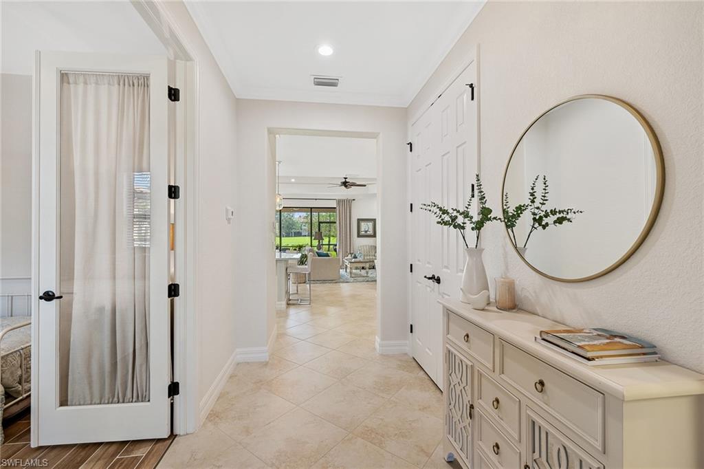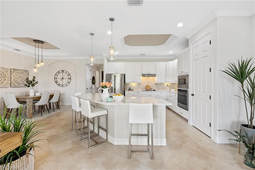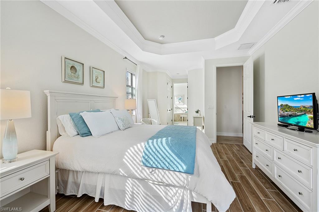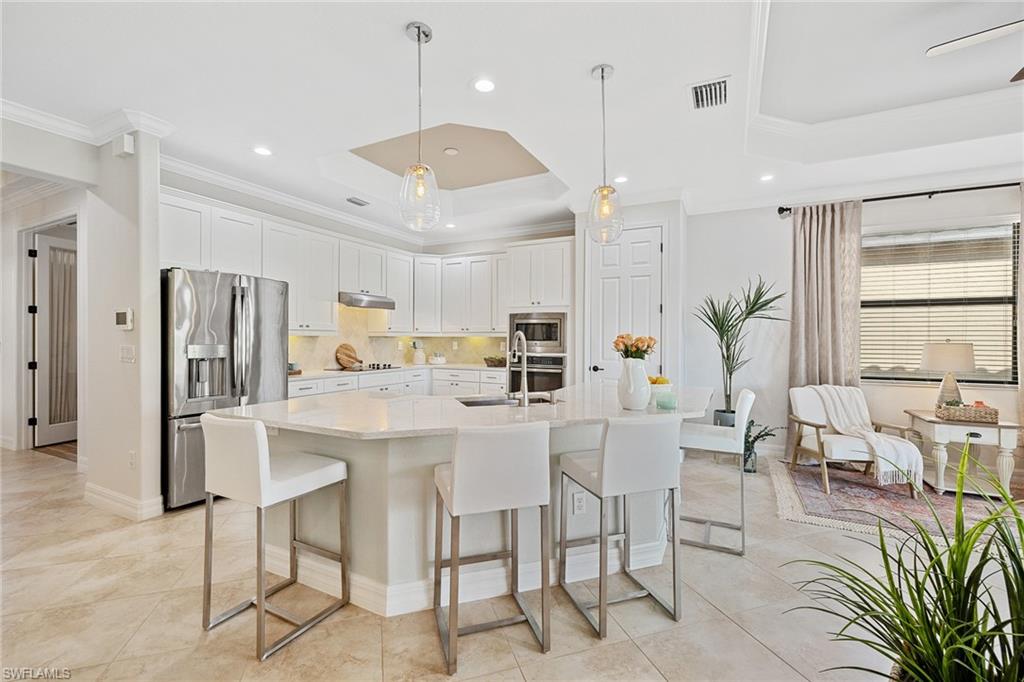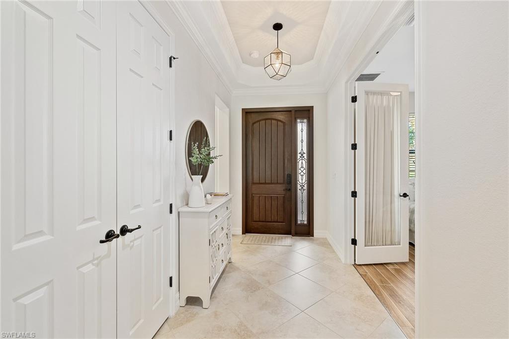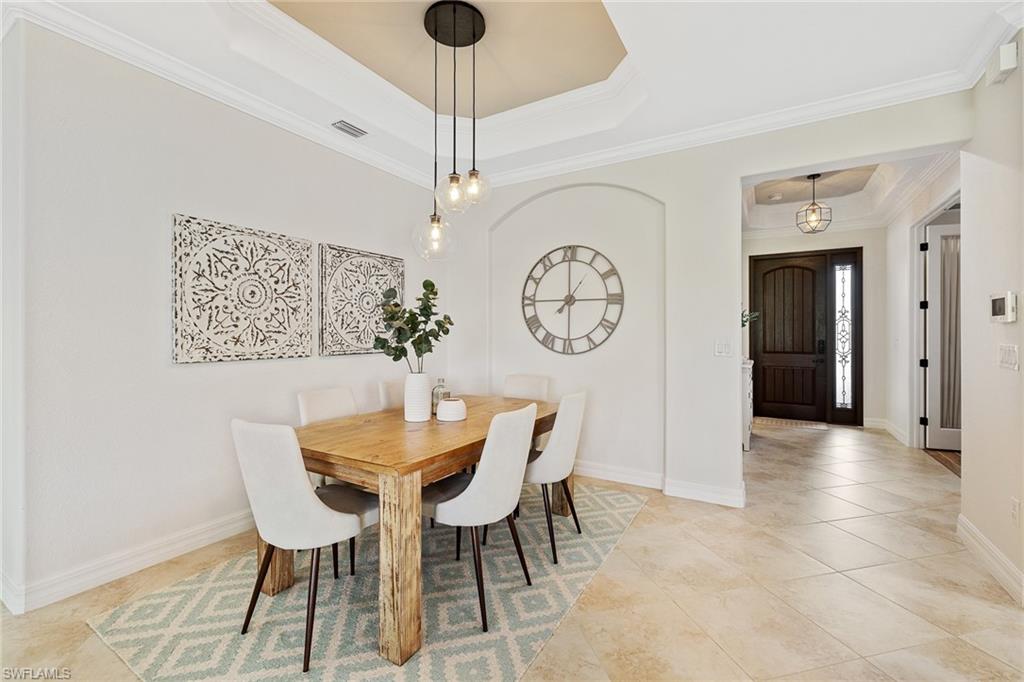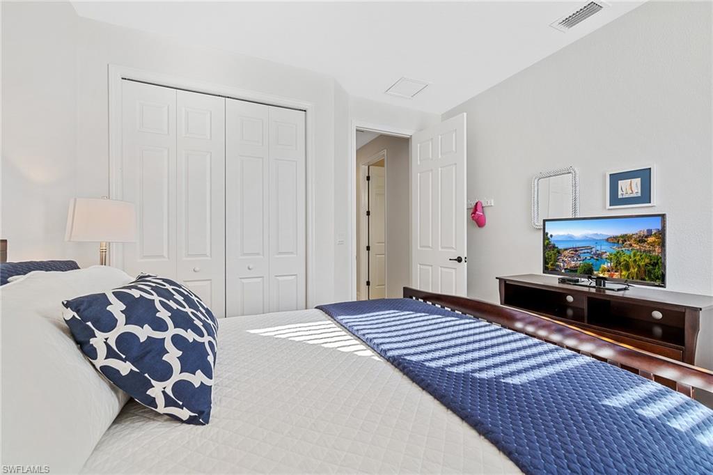 A FULL GOLF MEMBERSHIP IS AVAILABLE FOR TRANSFER. The property is rented for the 2025 season. Experience southern charm in the furnished `Victoria` floorplan home located in SWFL. Situated near Bonita Beach, restaurants, shops, and RSW Airport, you can enjoy serene sunrises over the pond and golf course from your lanai. Inside, the home boasts diagonal tile in shared spaces and plank tile in the bedrooms. The modern kitchen features quartz countertops and an island, complemented by top-of-the-line appliances. Other features include tray ceilings, crown molding, and impact-resistant windows and doors. The spacious lanai is equipped with a half bath and a grill. Bonita National offers amenities such as a resort-style pool, waterfall, bar and grill, championship golf, a clubhouse, dining, a pro shop, locker rooms, 8 tennis courts, a spa, and a fitness center. Dive into luxury in this home and experience the vibrancy of SWFL.
