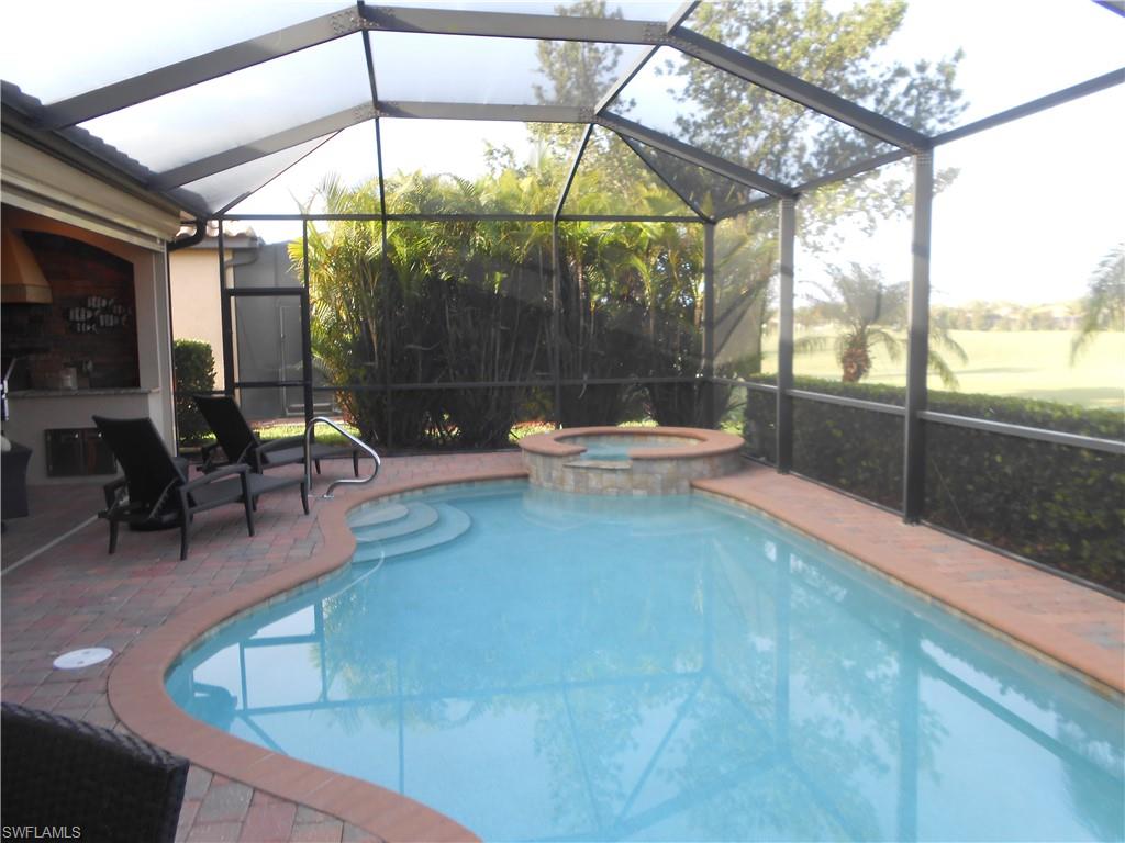 Available for November and December.This u201cTurnkey,u201d Coastal u201cIsabellau201d home was built in 2016 and has been meticulously maintained. Enjoy views of the sun setting over the golf course and donu2019t be afraid to utilize the automatic roll down storm screen at the lanai if the sun gets too warm. This home will make it easy to entertain your guests with the built-in grill at the lanai that offers ample, sheltered outdoor living space. The home also features a heated pool and spa, plank tile flooring, plantation shutters, tray ceilings, crown molding, upgraded lighting and fans, impact rated windows, and lush landscaping offering privacy. Bonita National has the best amenities in Southwest Florida highlighted by the resort-style pool with rock waterfall and poolside bar and grill, grand clubhouse with golf ,formal and informal dining, card rooms, 8 Har-Tru lighted tennis courts, spa, large fitness center. Located in the heart of SWFL, close to Bonita Beach, dining, shopping.