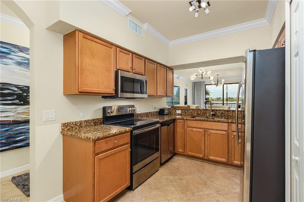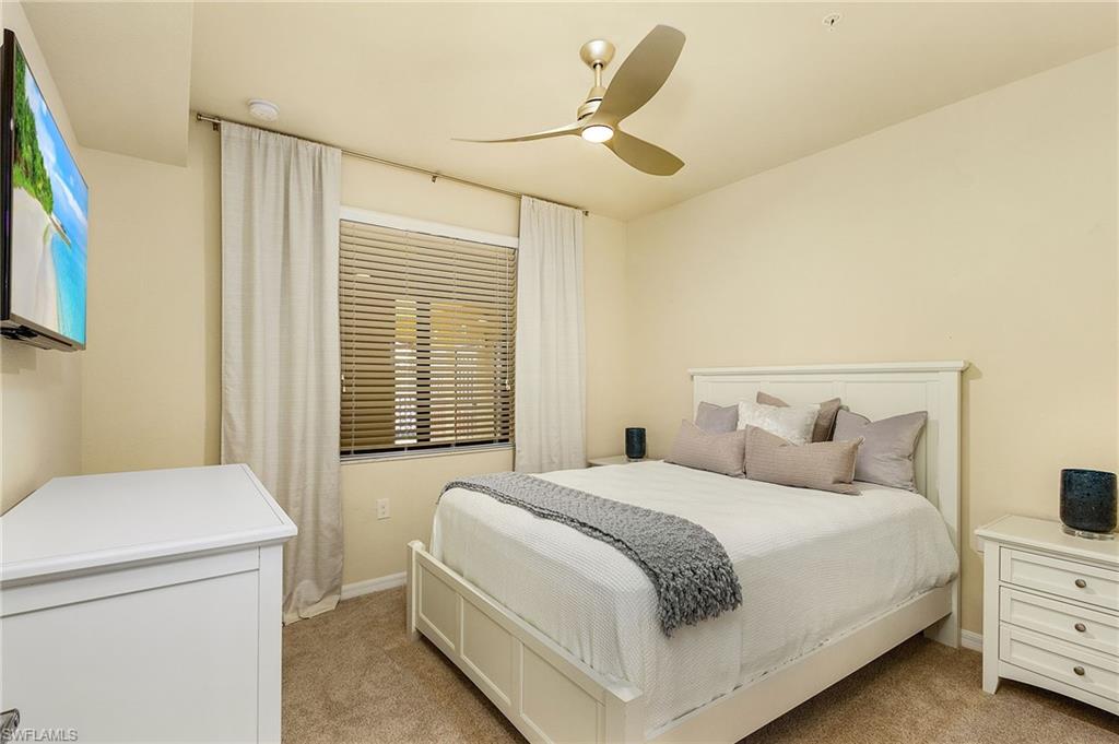 Available April 2026 season! Experience Bonita National Golf and Country Club with GOLF TRANSFER MEMBERSHIP! Beautifully furnished 2 bedroom, 2 bath second floor condo with stunning views of the first green, lake and clubhouse. Modern eat-in kitchen with granite counters. breakfast nook, stainless steel appliances and breakfast bar. Living area offers large TV screen and work area with spacious lanai. Master bedrm has two walk in closets and en-suite with large shower. Second bedrm is perfect for guests with adjacent full bath and laundry area. Convenient pool and barbecue grill at the side of building. Enjoy the resort style pool with lap lanes, waterfalls, outdoor jacuzzi and Cabana bar. State of the art exercise facility, spa services and fine dining in the Clubhouse. The Bonita National Golf course designed by Gordon G. Lewis offers an aqua driving range and pro shop. Tennis Center offers eight Har-Tru surface courts with pro shop. Great location to beaches, shopping and downtown Naples. Paradise is waiting for you to stay in this gorgeous turn key condo.