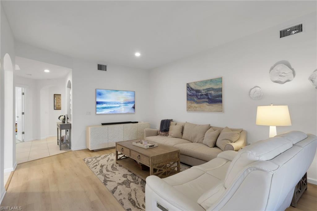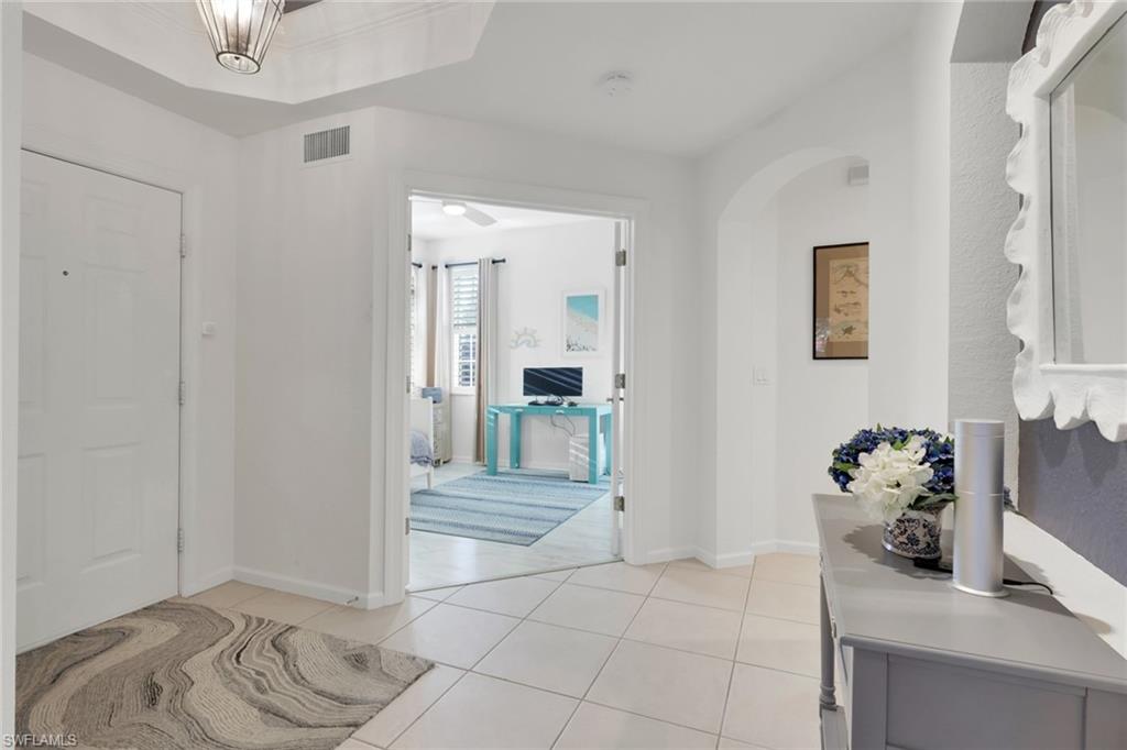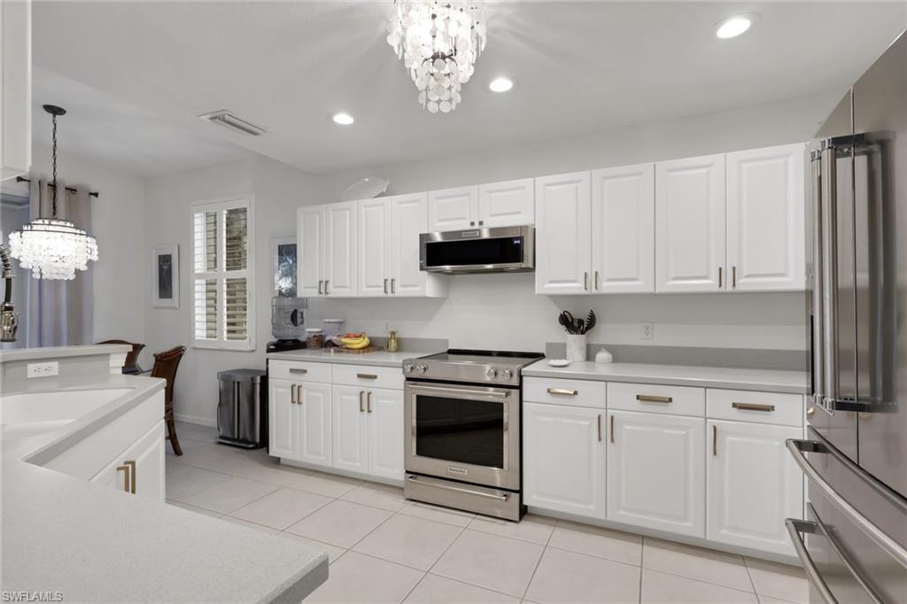 DON'T MISS THIS impeccably maintained and truly pristine, light-filled end unit that blends timeless elegance with everyday comfort. Surrounded by beautifully landscaped grounds, the home invites you with an entrance foyer featuring a tray ceiling. The luxury vinyl flooring flows throughout the main living areas, and the classic neutral paint colors enhance the bright, airy atmosphere providing an immediate sense of the Florida lifestyle.Thoughtful upgrades elevate every room: new appliances that include washer and dryer, updated light fixtures, plantation shutters, and custom window treatments add both style and functionality. The updated kitchen and primary bathroom offer fresh finishes and a modern feel. The den with a double closet also serves as a third bedroom. The garage has walls of storage cabinets, and an electric car charger. As an end unit, the home enjoys added privacy, abundant natural light, and views of the surrounding greenery.Move in ready and impeccably cared for, this residence offers the perfect balance of sophistication and comfort.This unit is located near (Just steps away) to the Tennis Pro Shop and courts; pickleball & bocce courts; Renaissance Club activities and amenities center; poolside and Bistro dining/sports bar; state-of-the-art fitness center; yoga studio; and MUCH MORE! Palmira Golf & Country Club is a much-desired community offering abundant amenities to suit an active, social lifestyle. Itu2019s convenient to nearby shopping, entertainment, restaurants, beach access & SWFL Airport. All residents are members of the newly-renovated Renaissance Center Club, complete with a lagoon-style and olympic-style lap pool, spa, restaurant, patio grille, 5450 sf fitness & wellness center, 8 tennis courts, 4 pickle ball courts, 4 bocci courts and more! Palmira Country Club Golf Members enjoy a 41,000-square-foot clubhouse, dining room, grille room, outdoor fire pit, pro shop, billiards, tennis, and a 2021 renovated Gordon Lewis designed 27-hole golf course.