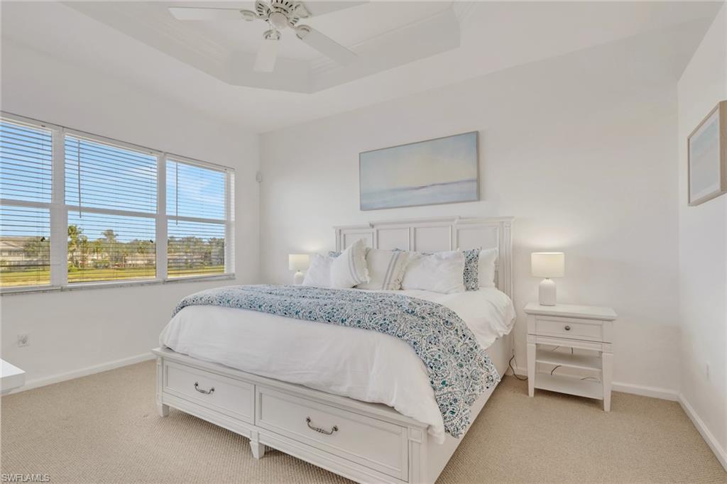 Enjoy breathtaking expansive lake and sunset views from this beautifully designed coach home in Paloma at Palmira Golf & Country Club. With amazing views from this elevated unit, abundant natural light, and a bright open-concept layout, this residence delivers the ideal Southwest Florida lifestyle for full-time living, seasonal enjoyment, or investment use.This spacious home offers 2,297 square feet of living space and features 3 bedrooms plus a den, which functions as a true 4-bedroom layout, along with 2.5 baths. The newly remodeled kitchen with brand new appliances is a standout, showcasing crisp white cabinetry, modern finishes, and an open design that flows seamlessly into the main living areasu2014perfect for entertaining and everyday living. The home includes a brand-new A/C unit installed in 2024, as well as electric hurricane shutters for comfort and peace of mind.Step onto the screened lanai and take in the incredible panoramic lake views and unforgettable sunsets, creating a serene indoor-outdoor living experience. Additional highlights include a two-car garage, an additional deeded parking space, and generous space for hosting family and guests.Palmira is one of the areau2019s most sought-after resort communities, offering an exceptional lifestyle with a resort-style pool, fully staffed state-of-the-art fitness center, community center, library, business center, concierge services, tennis courts with an on-site professional, bocce, putting green, and a 27-hole championship golf course complete with a pro shop, grill room, and elegant country club.Ideally located just minutes from Barefoot and Bonita Beach, consistently ranked among the top beaches in the country, and conveniently close to RSW International Airport, as well as premier shopping and dining throughout Southwest Florida.This lakefront carriage home offers stunning views, thoughtful upgrades, and resort-style amenitiesu2014an exceptional opportunity in the heart of Bonita Springs.