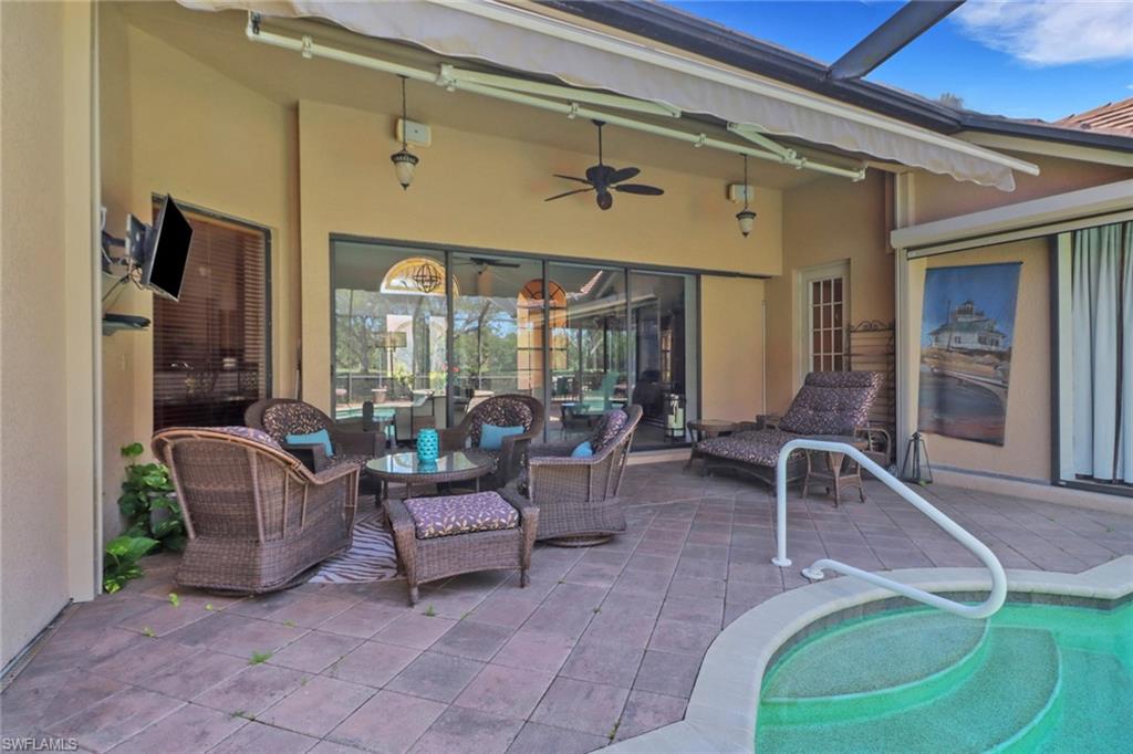 Great opportunity to own TURNKEY, a FOUR-bedroom home in one of Palmira's desired neighborhoods, Villa Tuscany. The front entrance has double glass doors, and opens to immediate view of the outdoors and West view of HOLE #3 ON THE IBIS COURSE. The great room, kitchen with breakfast bar, and large dining area were designed to create combined large space for entertaining. Nearly 2300sf of living space, this home offers 3 FULL baths; TWO separate en suites, and one with Zero corner sliding glass doors; 2019 roof replaced; 2017 A/C replaced. The extended lanai has an outdoor kitchen, solar-heated pool & spa, accordion shutters, motorized hurricane protection shutters. There's a security system and a new on-demand hot water heater. The garage floor has an epoxy surface. 2020 RCC Assessment is paid in full. Palmira Golf & Country Club is a much-desired community offering abundant amenities to suit an active, social lifestyle. Itu2019s convenient to nearby shopping, entertainment, restaurants, beach access & SWFL Airport. All residents are members of the newly-renovated Renaissance Center Club, complete with a lagoon-style and olympic-style lap pool, spa, restaurant, patio grille, 5450 sf fitness & wellness center, 8 tennis courts, 4 pickle ball courts, 4 bocci courts and more! Palmira Country Club Golf Members enjoy a 41,000-square-foot clubhouse, dining room, grille room, outdoor fire pit, pro shop, billiards, tennis, and a 2021 renovated Gordon Lewis designed 27-hole golf course.