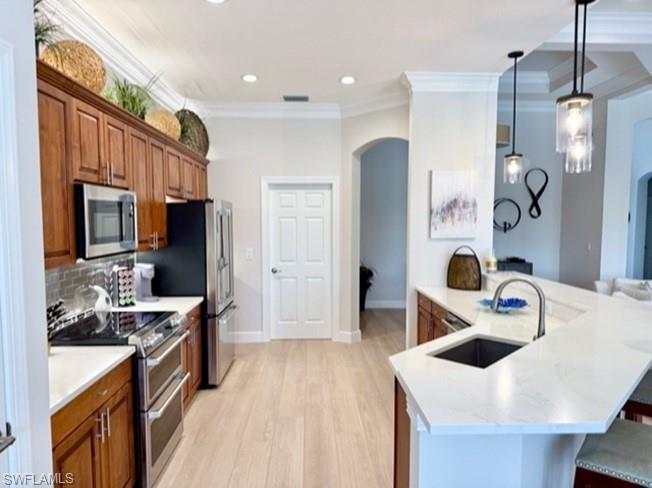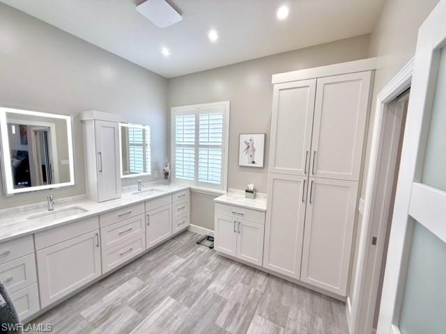 PALMIRA COUNTRY CLUB POOL HOME with Priceless view!Three bedrooms and two full baths. Remodeled kitchen open floor plan with modern quartz countertops, new backsplash, new GE Cafu00e9 appliances with induction oven. Exquisite master bath completely remodeled. 2024 installed Coretec LV plank wood grain throughout home, 5u201d base board, crown molding in living areas, plantation shutters throughout, custom master closet. Pool has solar heating and 2024 new heater and pool deck coated. Picture window lanai. Electric rollup hurricane shutters both front and back of home. Motorized garage storage system. Phenomenal view of pond and golf green with east facing lanai. Resort amenities of golf, tennis, pickleball, bocce. Beautiful landscaping. Close to 75, RSW and Naples. 10 miles from pristine Gulf beaches.Included are resort amenities at the Renaissance Center Club.