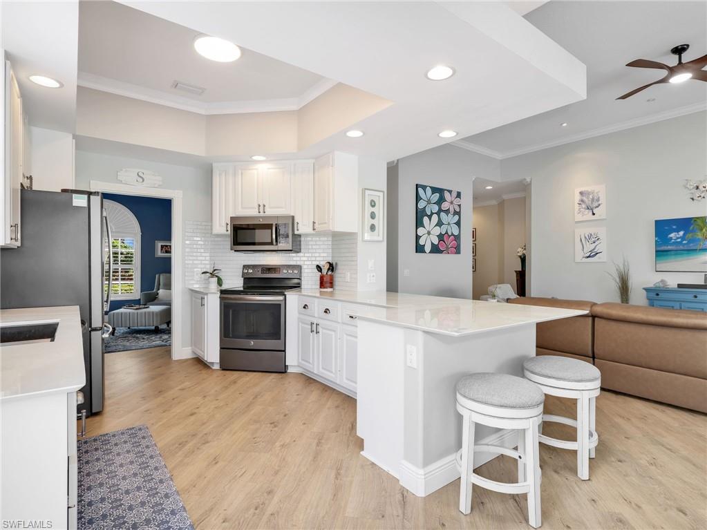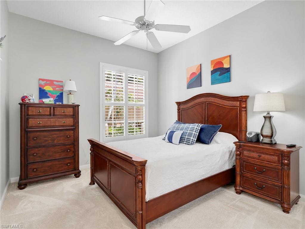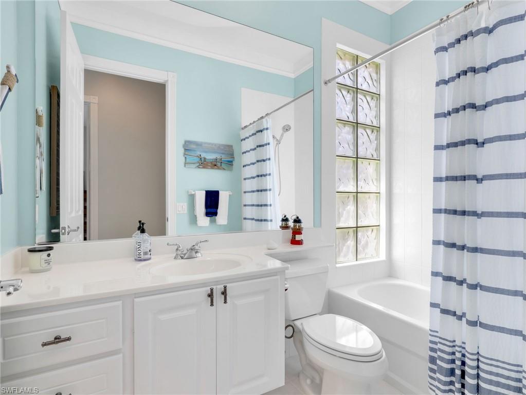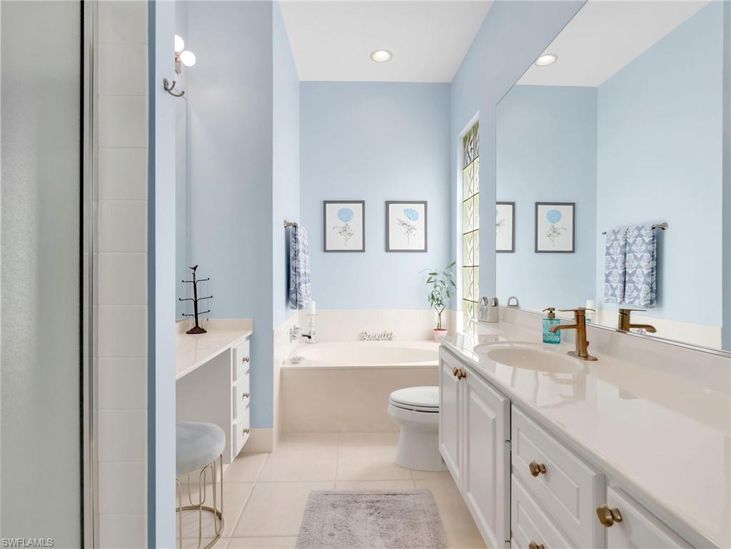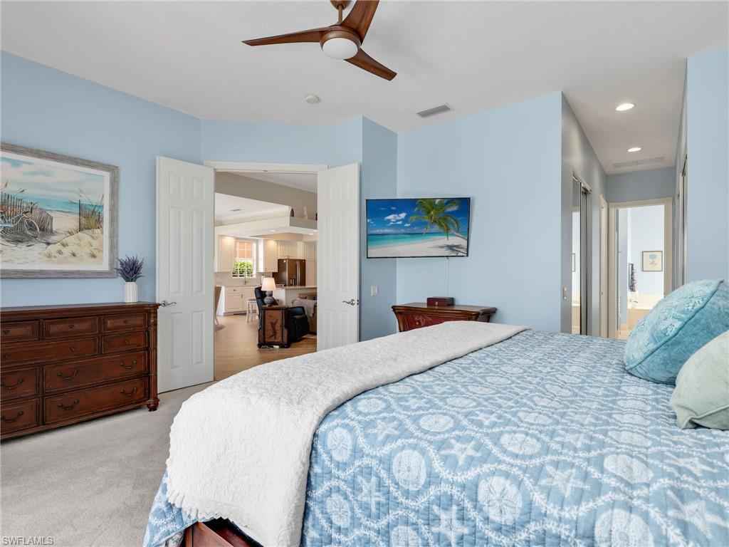 A truly exceptional waterfront setting defines this DiVosta-built Oakmont residenceu2014where three converging canals create a rare, expansive wide-water panorama that immediately captures your attention. Offering 3 bedrooms + den, 2 bathrooms, and a 2-car attached garage, this poured concrete and steel-reinforced home combines quality construction with an open, functional layout designed for both everyday living and entertaining. From the moment you step onto the spacious rear lanai, youu2019re met with sweeping, unobstructed water views, shimmering reflections, and a remarkable sense of openness and privacy. The heated saltwater pool is perfectly positioned to maximize this one-of-a-kind vantage pointu2014an ideal setting for sunset entertaining, quiet mornings, or simply enjoying the serenity of waterfront living. Located within San Remo at Palmira, a charming gated community of just 351 homes in Bonita Springs, the neighborhood is known for its lush tropical landscaping, tranquil lakes, and park-like settingu2014all with NO CDD fees. Inside, the home showcases an open floor plan with diagonally laid laminate flooring throughout the main living areas, a split-bedroom design, and a beautifully updated kitchen featuring Dekton countertops, tiled backsplash, newer gray stainless steel appliances, and a breakfast bar. Additional highlights include custom closets, plantation shutters, crown molding, 5u00bcu201d baseboards, central vacuum, security system, electric roll-down storm protection, and a recently painted exterior. The pool and tile have also been refinished, and the brick paver driveway and walkways enhance the homeu2019s curb appeal. Major updates include a newer roof (2020), A/C system (2021), and pool heater (2023), providing added value and peace of mind. Residents enjoy convenient access to community amenities just a short walk away, including a resort-style pool, fitness center, tennis and pickleball courts, and more. Ideally situated near Bonita Beach and Barefoot Beach, as well as premier shopping and dining at Coconut Point, The Promenade, Waterside Shops, and Miromar Outlets, the locationu2014enhanced by the Logan Extensionu2014offers seamless access to North Naples while maintaining a peaceful, private setting.