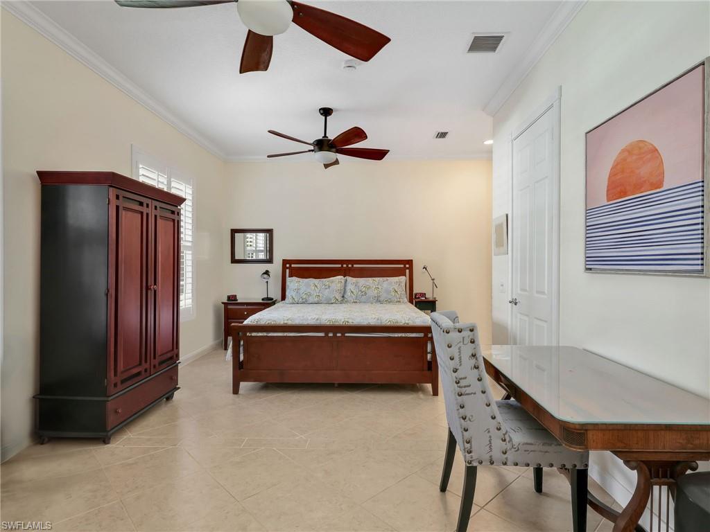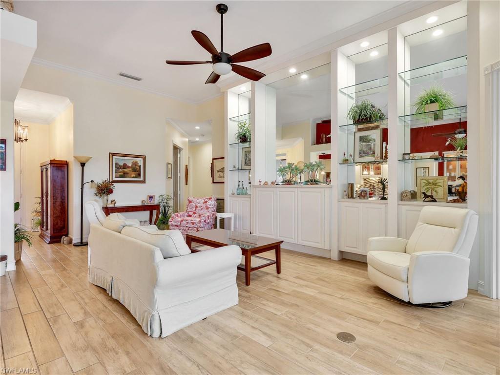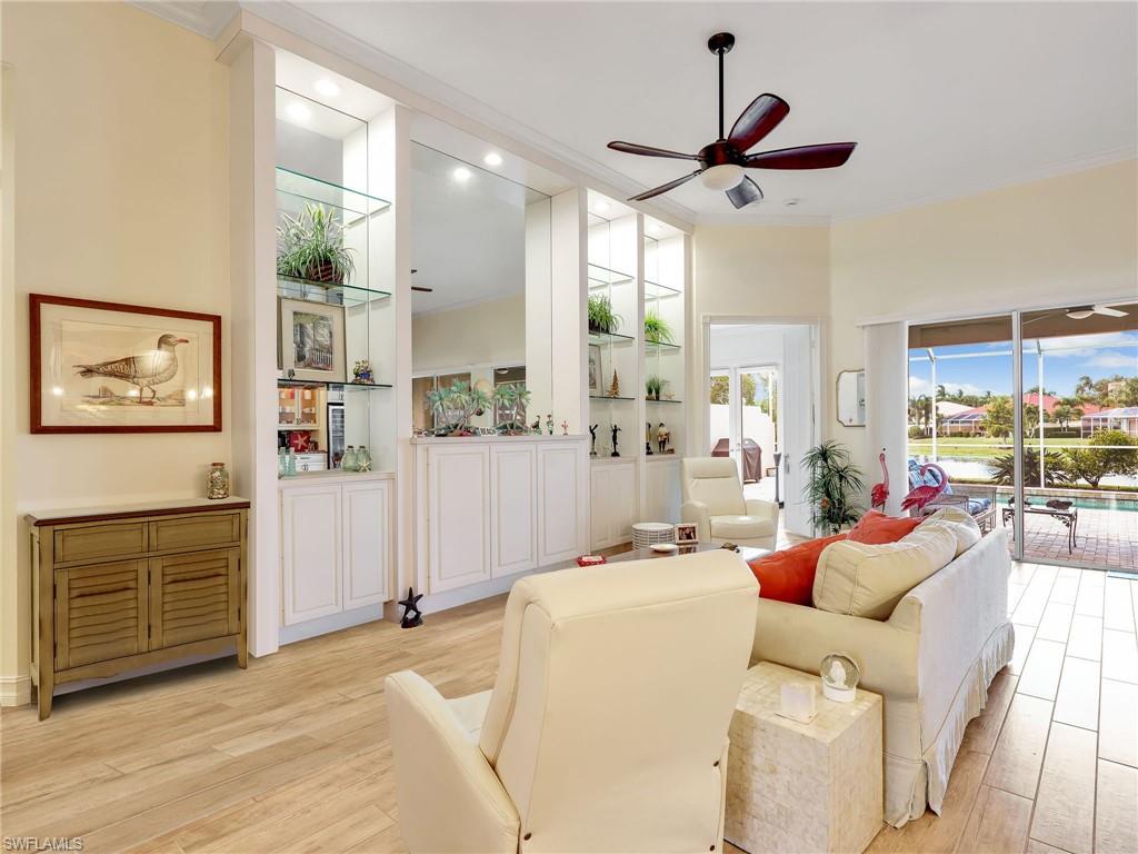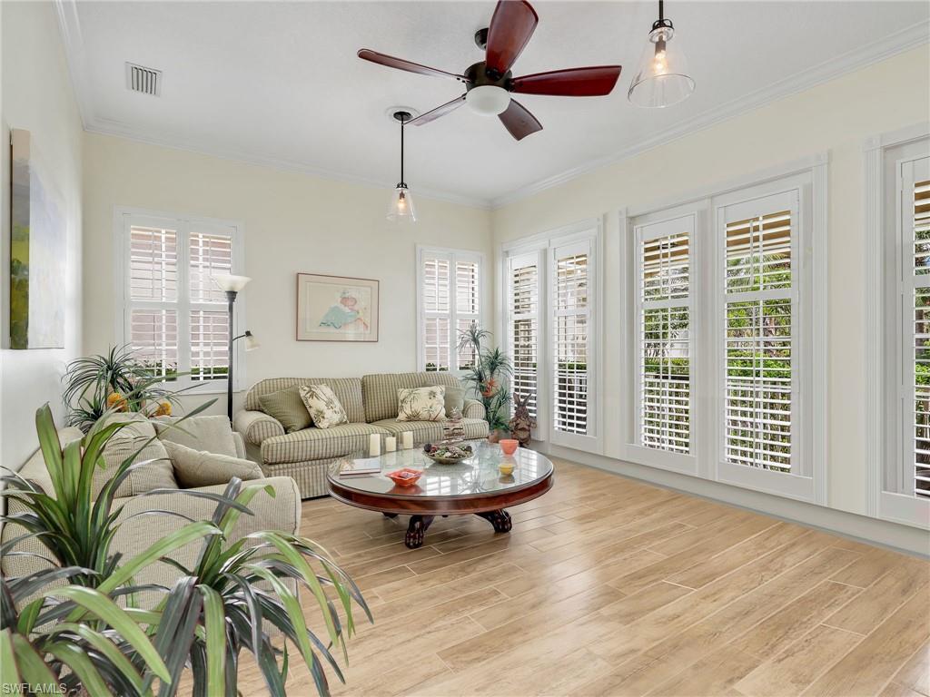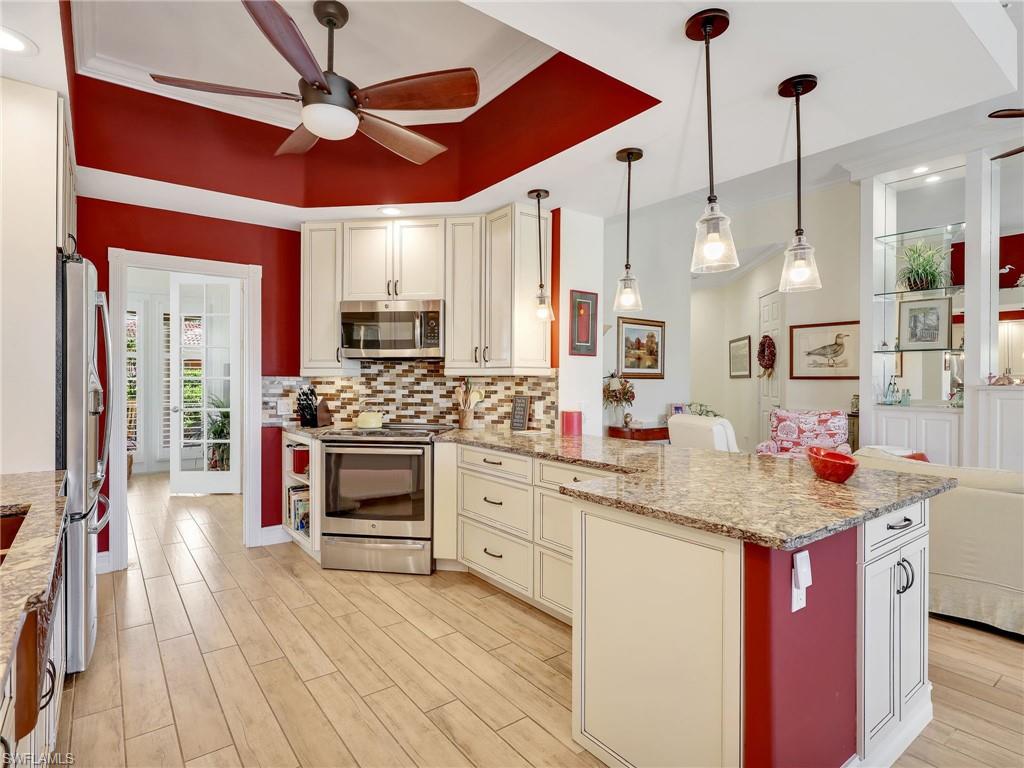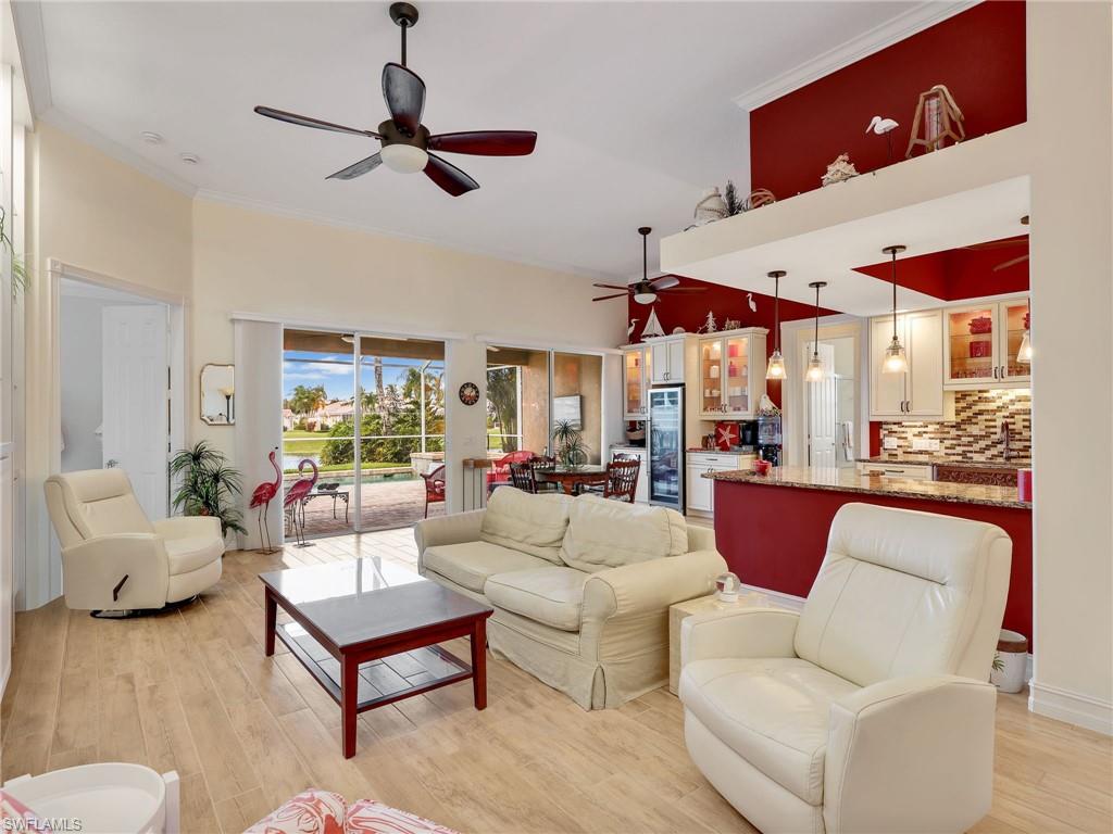 Discover this stunning 4-bedroom + den, 3.5-bath lakefront pool home in the highly desirable gated community of San Remo at Palmirau2014where timeless architecture meets resort-style living in the heart of Bonita Springs!From the moment you arrive, the lush tropical landscaping, paver driveway, and inviting front porch framed by graceful columns set the tone for what awaits inside. Step through the glass entry door into a bright and open floor plan filled with natural light, soaring ceilings, and tasteful finishes throughout.The heart of the home centers around a spacious great room and beautifully updated kitchen featuring granite counters, stainless steel appliances, custom cabinetry, and large and spacious ideal for entertaining. The dining and living areas flow seamlessly to the expansive lanai, where sparkling pool and spa views overlook a tranquil lakefront settingu2014perfect for relaxing mornings or sunset gatherings.The owneru2019s suite offers serene water views, dual vanities, and a walk-in shower, while guest rooms provide comfort and privacy for family or visitors. The den/flex room is ideal for a home office, reading nook, or hobby space. Elegant details like plantation shutters, crown molding, pendant lighting, and neutral tile flooring add a touch of sophistication throughout.Enjoy the perfect balance of privacy and community living in San Remo, a DiVosta-built neighborhood known for its solid concrete construction, tree-lined streets, and small-town feel. Residents enjoy access to resort-style amenities including a clubhouse, fitness center, heated resort pool, pickleball and tennis courts, and scenic walking paths winding around sparkling lakes and charming footbridges.Located just minutes from Coconut Point Mall, downtown Bonita Springs, pristine Gulf beaches, and RSW Airport, this home captures the essence of Southwest Florida livingu2014comfortable, convenient, and full of charm.Donu2019t miss your opportunity to own this inviting lakefront retreat at 14815 Carducci Ctu2014where every day feels like a vacation.