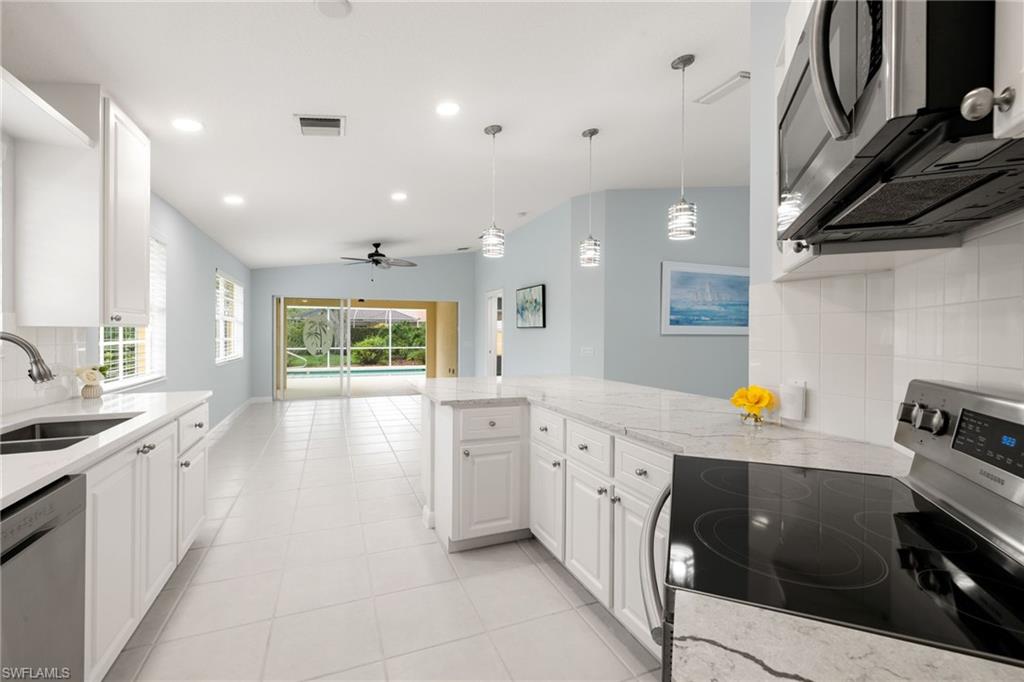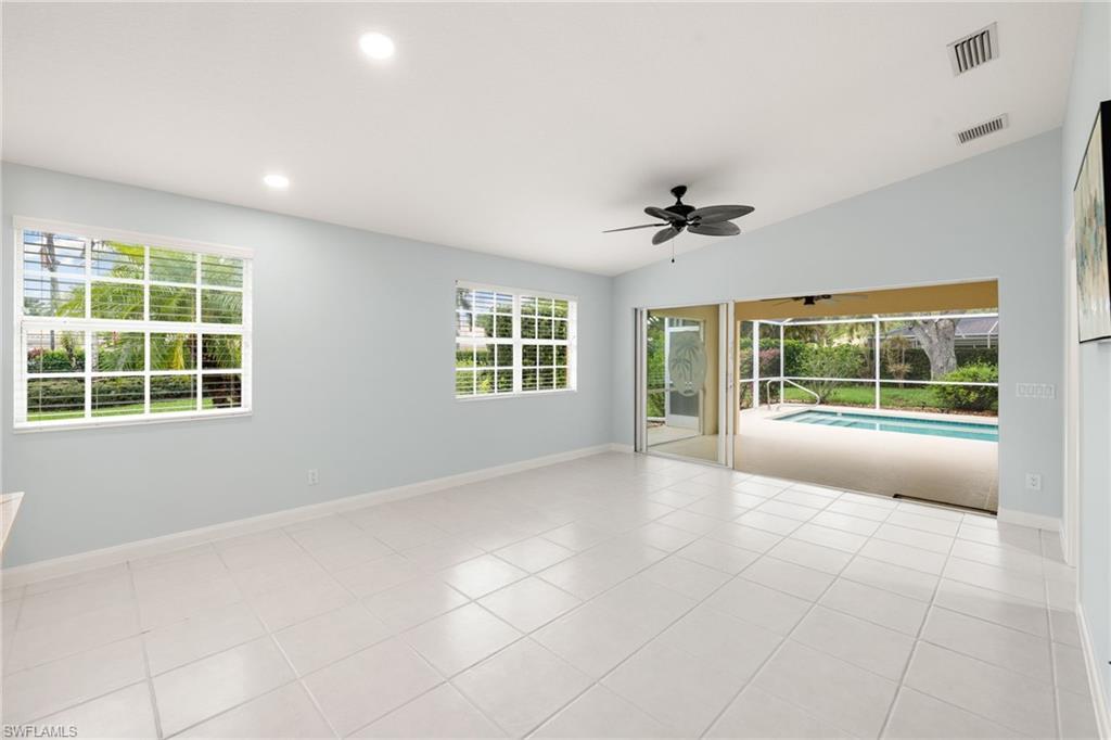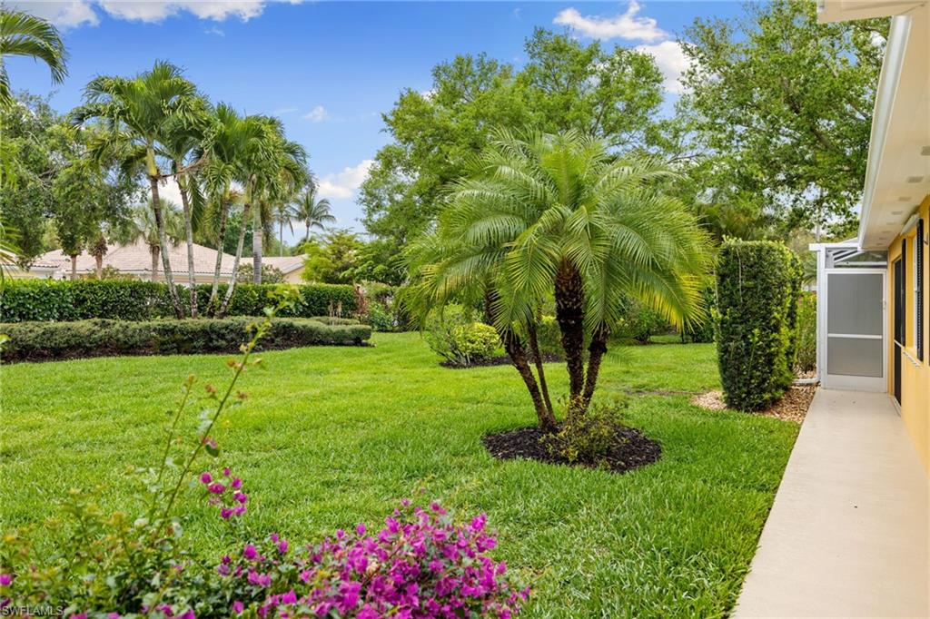 Donu2019t miss your chance to tour this beautifully refreshed Capri model sitting on an oversized, lushly landscaped lot with its very own private heated pool. Recently painted, this home is ready to impress! The remodeled open kitchen is a showstopper, featuring stunning quartz countertops, sleek white cabinets, stainless steel appliances, and modern LED recessed lighting. The open-concept dining and living areas boast soaring ceilings, an abundance of natural light streaming through large windows, and a seamless flow of tile and luxury laminate flooring throughout. Both bedrooms come with en-suite bathrooms, offering ultimate privacy for you and your guests. Recent updates include a new water heater and pool pump (2021) as well as updated door handles and a fresh kitchen sink.Nestled in the gated community of San Remo, this home offers not just a place to live, but a vibrant Florida lifestyle. Residents enjoy a wealth of amenities, including a clubhouse, resort-style pool, tennis and pickleball courts, a fitness center, and picturesque walking paths. Perfectly located, San Remo provides convenient access to shopping, dining, and everyday essentials, plus proximity to Bonita Springsu2019 beautiful beaches, Southwest Florida International Airport, and nearby hotspots like Estero and Naples. This is your opportunity to embrace the Florida dreamu2014schedule your showing today!