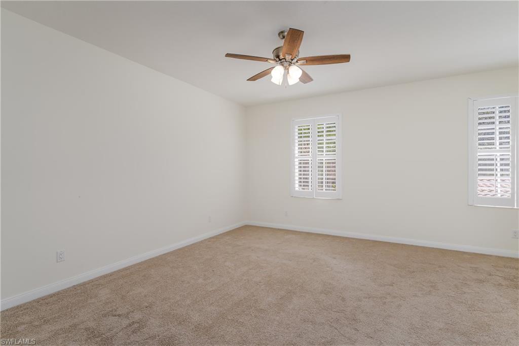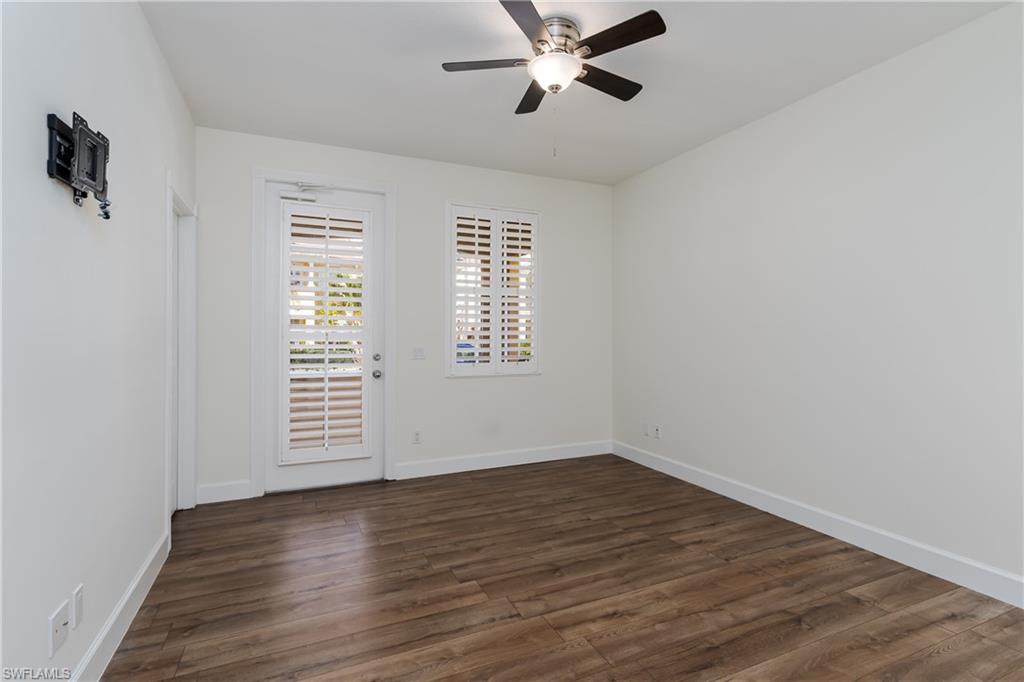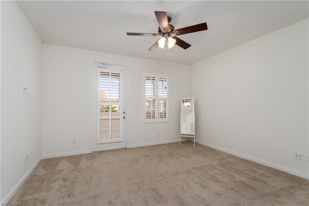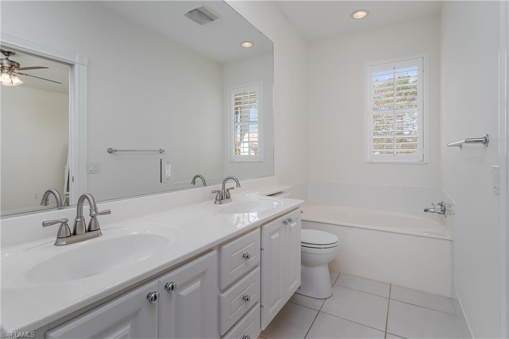 One of the few townhomes in San Remo with plentiful green space behind the garage!!! Beautifully tucked away in a very quiet area, you'll find tranquility and beauty at 28700 Alessandria in the highly sought after community of San Remo!! This Mediterranean designed townhouse is meticulously clean and bright with a fresh look!!! Newer appliances and beautiful flooring throughout!! Plantation shutters throughout!! There is a full home R/O system for the water!! The two, spacious, master en-suites are perfectly located within the townhouse!! All three bedrooms have large walk-in closets!! One of the top master suites has a private balcony for those cool moon-lit nights!! The screened in extra large lanai has an electric awning!!! The two car garage with extra storage is right across from an extremely large green area for dog walks!!!! The clubhouse has a large updated banquet room,, large, complete workout room and huge pool!! The property is only 6 mins to Publix and essential shopping!! Only 16 mins to the Beach!!! With the new opening of Logan Blvd, Naples can be accessed from Bonita Beach road very quickly!!