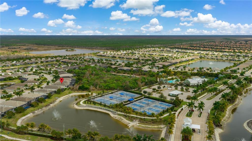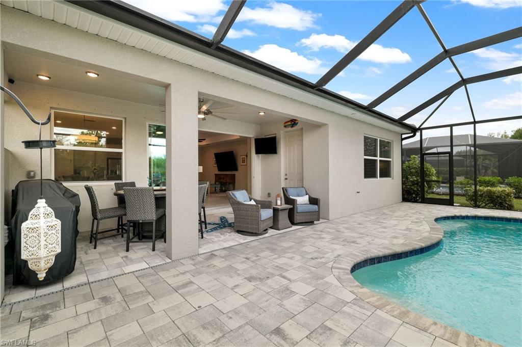 The Barrymore that truly offers MORE. There is so much to love about this home. Boasting 2,255 sqft, 3 Bedrooms + Den, 3.5 bathrooms including a half bath off the lanai, and an impressive 3 Car Tandem Garage that could actually fit 3 cars and a golf cart, or two full size trucks! The garage is air conditioned so you could make it your own gym or even pop up a golf simulator! The home is light and bright and includes features such as a heated pool with southern exposure sun, modern tile flooring, 7 tray ceilings, arched entry ways, quartz counters, and a spacious primary suite with a huge walk-in closet. Seasons offers an active lifestyle, including a resort style pool, hot tub, 8 pickleball courts, 3 tennis courts, 3 bocce courts, and a dog park. The home is perfectly located, offering private preserve views and a partial lake view. Just a short walk away is the amenities center. Seasons is located in a very quiet and serene neighborhood, near the end of Bonita Beach Rd. In flood zone X so flood insurance is not mandatory. Close to the RSW Airport, Downtown Bonita Springs, Bonita Beach, Barefoot Beach, and the upcoming `Midtown at Bonita.`