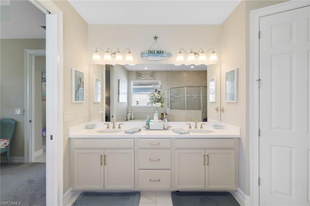 Welcome home to this beautifully maintained Barrymore model, a spacious single-family residence offering 2,255 square feet of elegant living space, designed for comfort, style, and outdoor enjoyment. The rear of the home is south facing and features 3 bedrooms + den, 3.5 bathrooms (including a convenient pool bath), and an extra-wide air conditioned 2.5-car garage with abundant extra storage space along with an extended drivewayu2014perfect for guests and hobbies alike. Even take a swing in the golf simulator conveniently set up in the garage! Step inside to an open-concept floor plan filled with natural light, complemented by a modern kitchen, inviting living spaces, and serene primary suite with a spa like primary bathroom retreat. Step outside to your private backyard retreatu2014a sparkling pool surrounded by lush landscaping with fountain views, offering the ultimate in privacy and relaxation. Additional highlights include extended roof and A/C warranties for peace of mind. The community offers dog parks, a large clubhouse, resort-style amenities, and so much more, all set in the heart of sunny Southwest Floridau2014your year-round paradise. Enjoy the perfect blend of elegance, functionality and Southwest Florida lifestyle starting today!