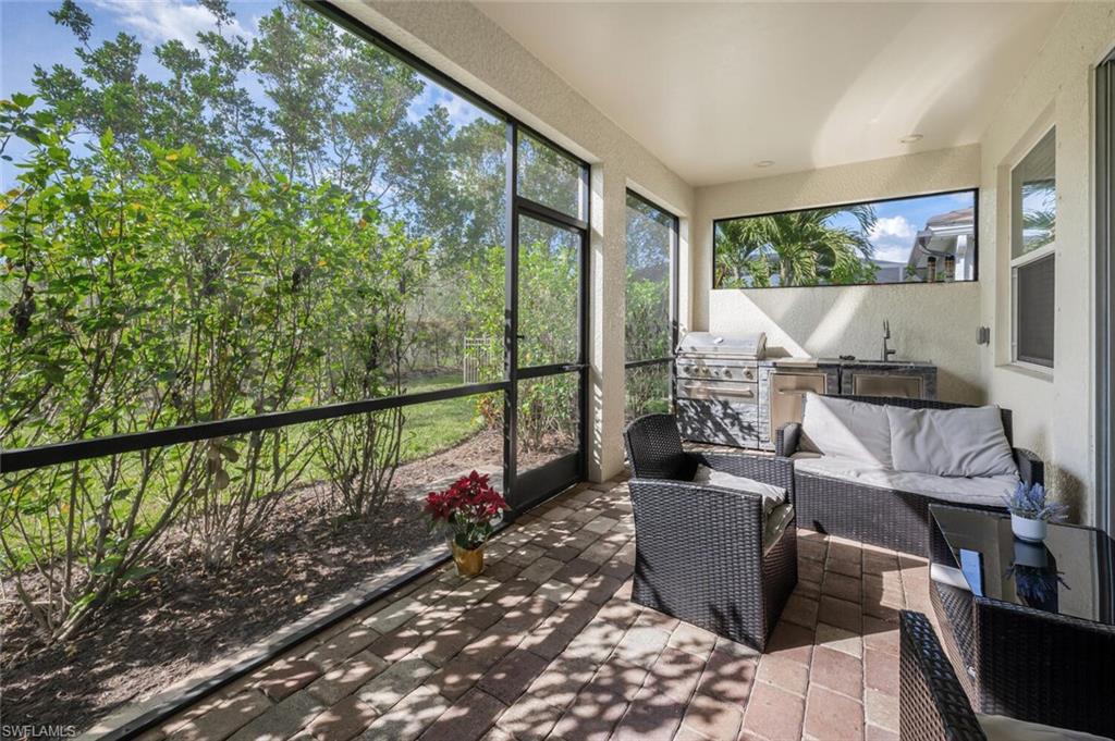Stunning Asbury Floor plan. 4 bedrooms plus a den, 3 full baths, 1 1/2 bath and 2 car garage. It's clear that a lot of thought and care has been put into its design and features. From the tray ceilings and custom lighting to the staggered tiles and open concept living area, it really has a luxurious and modern feel. The kitchen and owner's suite sound particularly impressive with their high-end finishes and spacious layout. The outdoor lanai with an outdoor kitchen and private bathroom seems perfect for entertaining or relaxing evenings. Plus, having landscaped and preserve views adds a touch of tranquility and beauty. Are you planning to move into this home, or are you considering it as an investment? Either way, it sounds like a fantastic place to live! Cable and Internet are included in the HOA fees. Located in a gated community with lots of amenities included; Clubhouse, Resort style pool with beach entry, lap lanes and ample sundeck, pool-side tiki hut, lounge chairs and an artificial white sand beach with hammocks for relaxing, Social room with a fully equipped kitchen, Nature trail, Fishing, Biking, Tennis, Bocce and Pickleball courts, Dog parks and Fitness center. Centrally located between Naples and Ft Myers, convenient to RSW airport.