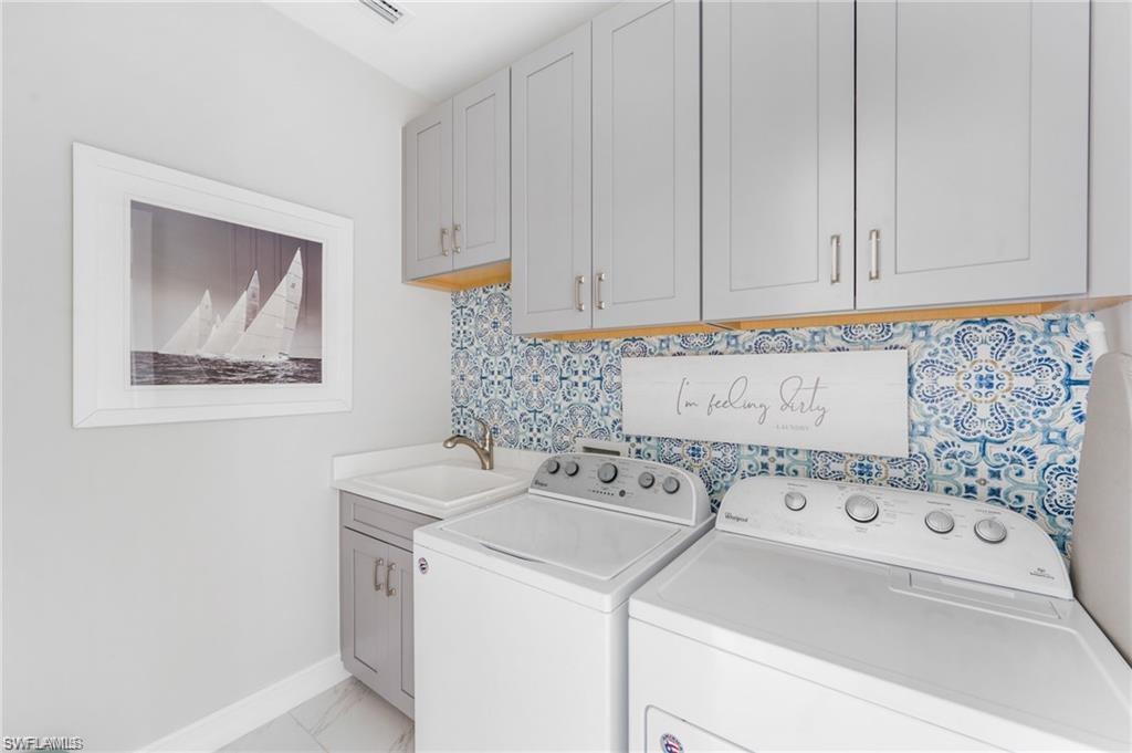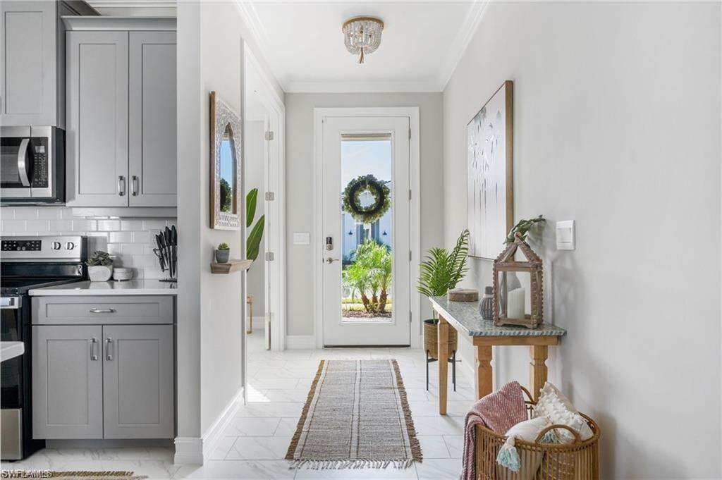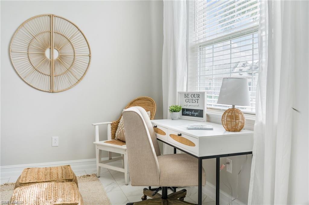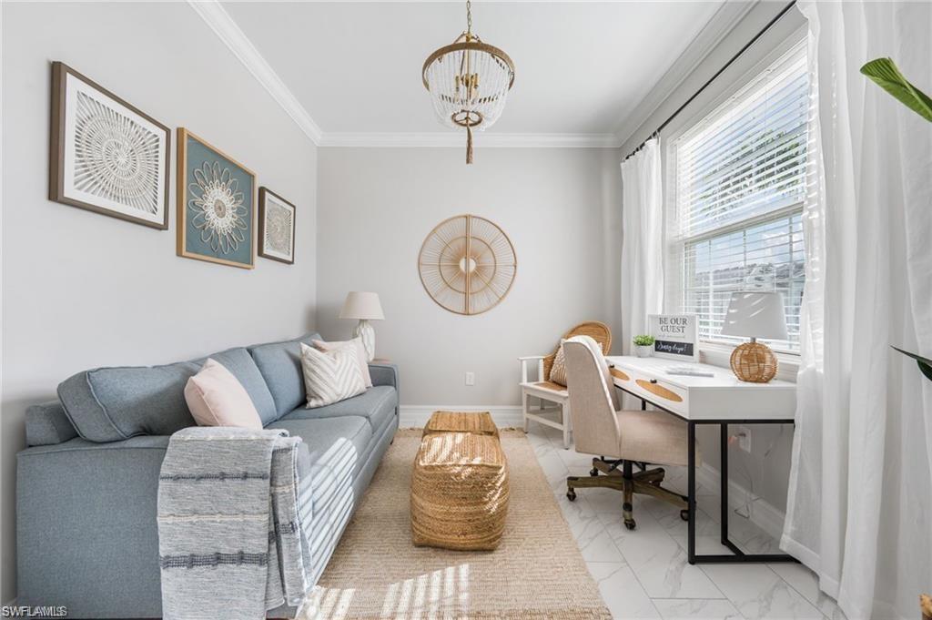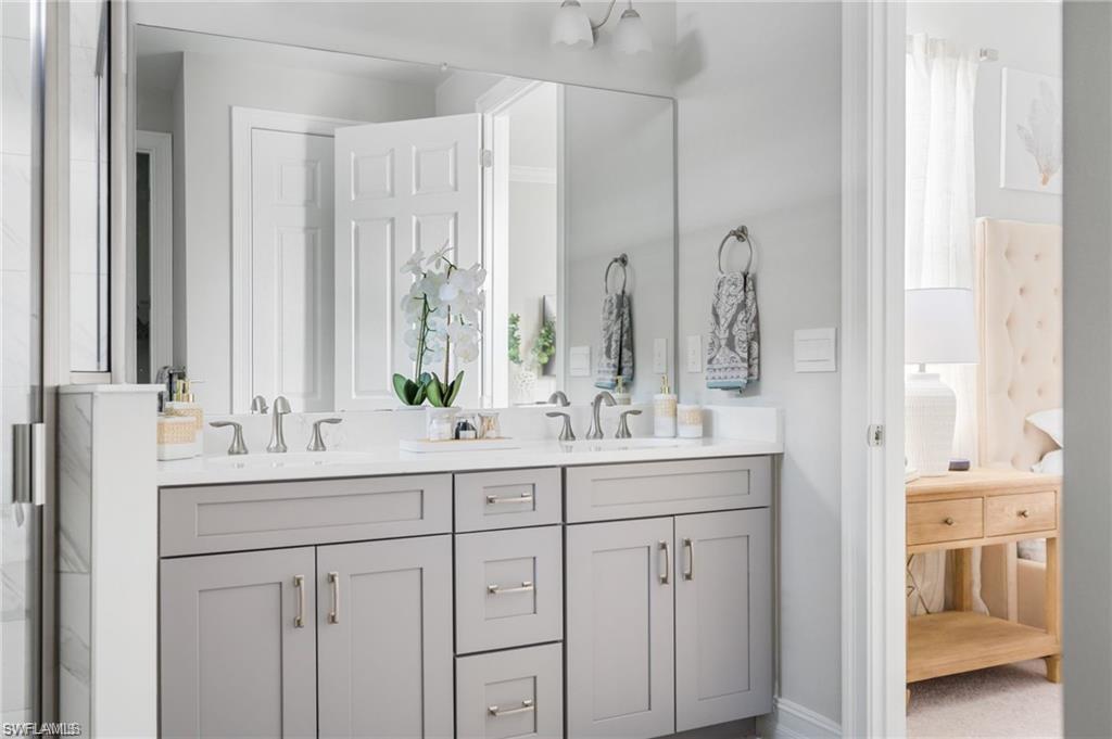 Coastal Modern Turnkey FURNISHED and PET FRIENDLY!!! Available August-Sept 2025 and May-December 2026 at $4000/mo, which includes internet and all utilities ($150/mo electric cap). 2 bedrooms plus a den to sleep up to 6 people! King sized bed and TV in Primary Suite with dual vanity sink and large walk in closet. The Guest Bedroom features a Queen sized bed and the den offers a sofa sleeper, plus a desk if you have to connect with the office. Screened lanai with outdoor dining set and grill. Large 2.5 car tandem garage for extra storage. Spend your days at the resort style amenity center enjoying the lagoon style pool, work up a sweat at the fitness center or meet up with some new friends at the tennis, pickle ball or bocce courts! Take an afternoon walk with your dog to the dog park and enjoy a sunset dinner on your back patio! Also just minutes to several famous Bonita Springs Golf Courses, the hot new Downtown Bonita and Riverside Park for dining and entertainment, Bonita Beach and all the fun Southwest Florida has to offer! Donu2019t miss out on this one! Owners are also listing agents.