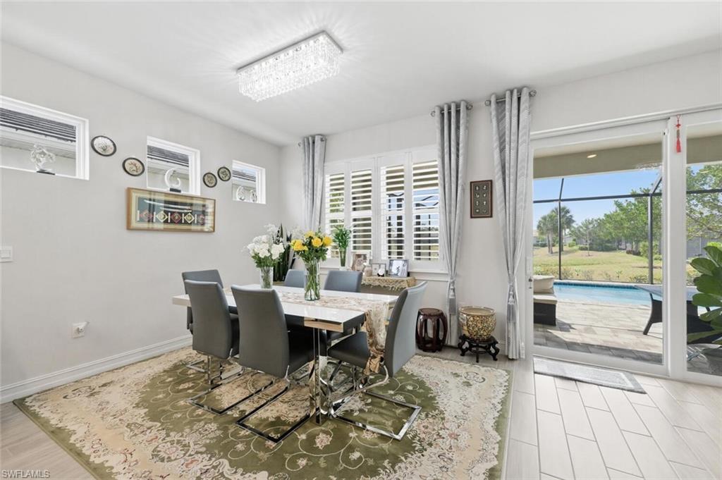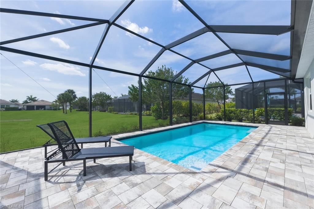 Beautiful 4-bedroom, 2-bath home with serene lake views in a premier gated community. This light-filled residence features elegant plantation shutters and an upgraded kitchen with white cabinetry, quartz countertops, and stainless steel appliancesu2014perfect for everyday cooking or entertaining. The open layout flows to a private swimming pool overlooking the water, creating a true indooru2013outdoor retreat. A 2-car garage adds convenience.Residents enjoy exceptional amenities including a clubhouse, lap pool, resort-style pool/spa, fitness center, bocce, pickleball and tennis courts, plus a dog park. A stylish home paired with resort-style living. Conveniently located near I-75, Gulf beaches, Ft Myers and Naples.