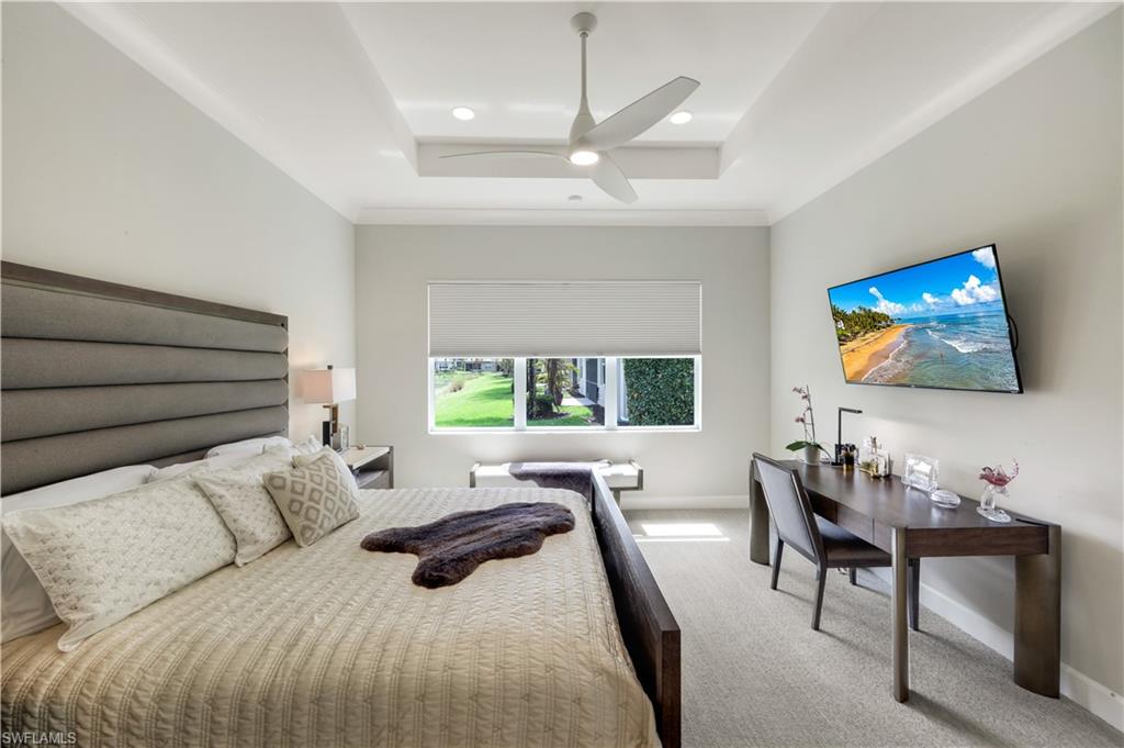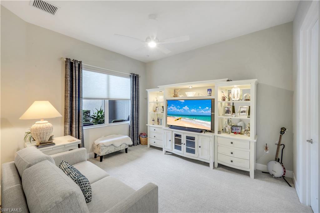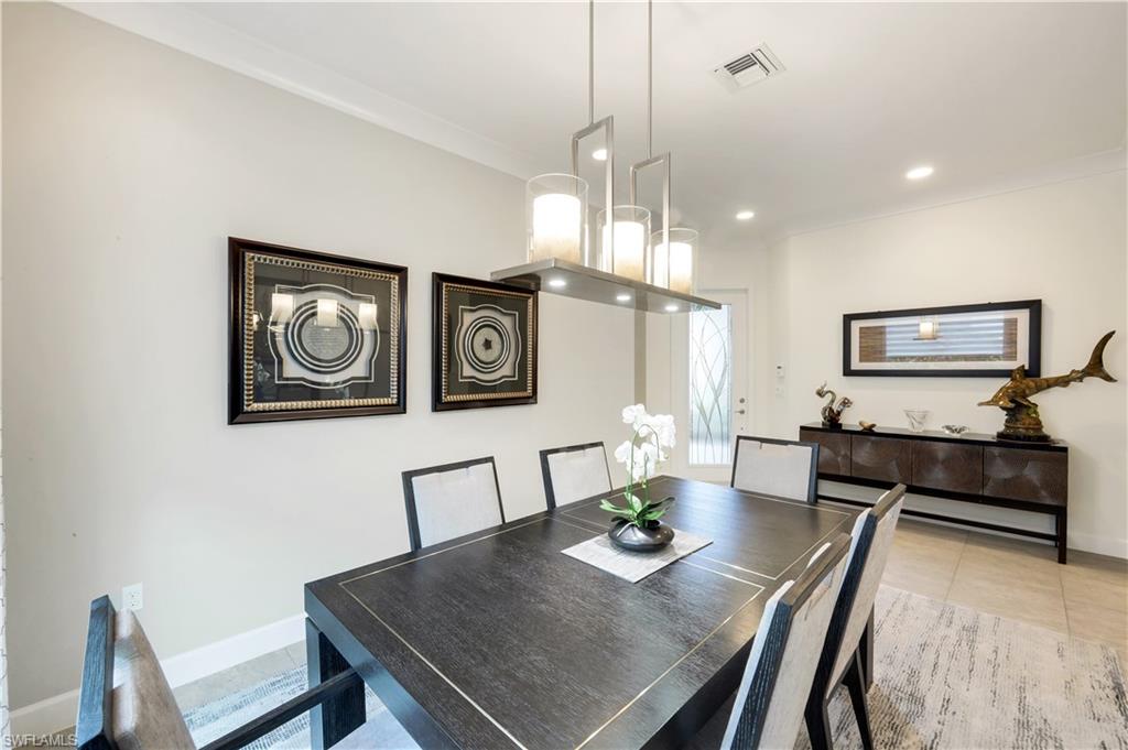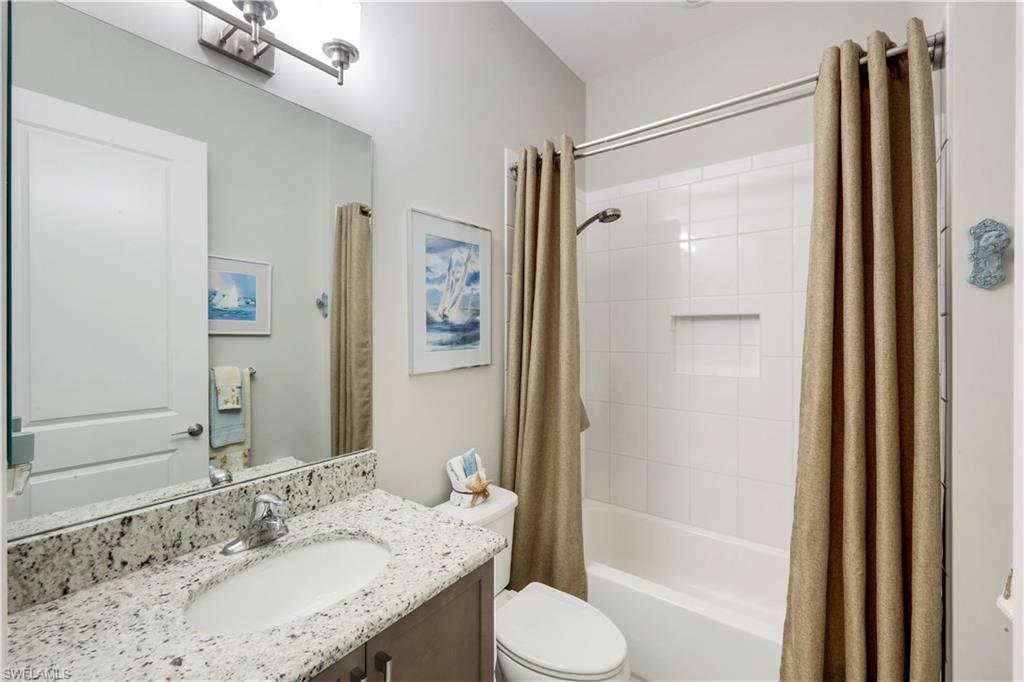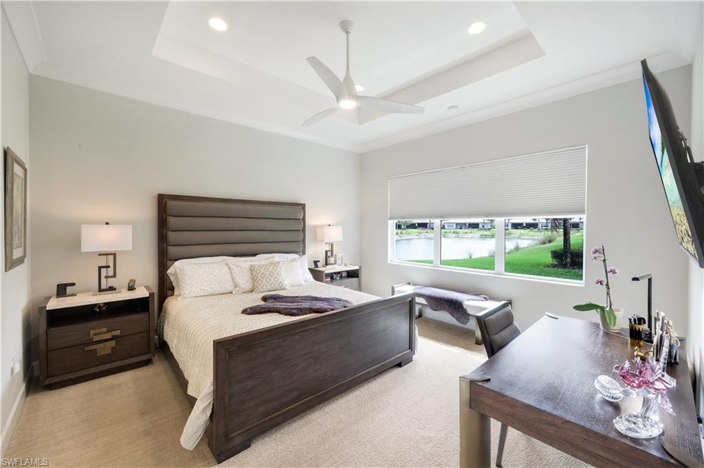 The Brighton floor plan is an attached Villa that offers a private front entry and a spacious open layout with 3 Bedrooms and 3 FULL BATHROOMS along with a 2 car garage. The bright white kitchen features quartz countertops, single bowl stainless steel undermount sink, white shaker style raised panel wood cabinets with builder upgrade upper cabinet boxes, pull outs in kitchen cabinets and pantry, GE builder upgraded slate appliances which includes French door refrigerator, dishwasher, slide in 30u201d 4 burner with griddle natural gas range, microwave vented outside, beautiful stone backsplash, large built in cabinet pantry, above & below cabinet lighting with light valence and molding. 5 1/4 u201c crown molding found in main living areas along with the primary bedroom. 20u201d X 20u201d tiled floors throughout the main living space and plush Berber carpet in the bedrooms . The owner installed a fantastic light fixture package along with ceiling fans. The bathrooms come with large floor tile that includes large wall tile at the bathtub and shower enclosures along with granite countertops and luxury height toilets. There is epoxy coating on the garage floor. Other additions through the builder were upgraded recessed lighting package, IMPACT WINDOWS , tankless hot water heater , decorative glass front entry door and an extended paver patio. Step outside onto your covered paver patio with the additional patio deck where this space provides ample room to entertain or just relax with the opportunity to see a beautiful lake view. All of this is located within Valencia Bonita, a vibrant 55+ community offering unmatched amenities including a spectacular clubhouse, resort-style pools, state-of-the-art fitness center, pickleball and tennis courts, walking trails, full-service salon, restaurant and outdoor bar, and an active calendar of social events and clubs. Donu2019t miss your chance to own this impeccably upgraded villa. Schedule your private tour today and experience the best of Southwest Florida living.