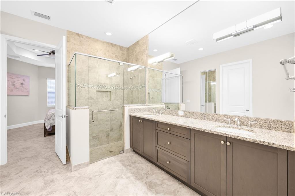Beautifully appointed 2-bedroom plus den, 2-bath residence, with 2-car garageu2014 this Hampton model has an exceptional layout that stretches the full width of the homeu2019s rear living space. This thoughtful design creates an expansive setting ideal for entertaining and everyday comfort, while offering a layout unlike any other villa model.Good news, this villa is located in the `X flood zone` and impact doors and windows throughout create peace of mind. From the moment you enter, youu2019ll notice the upgraded finishes throughout: Natural Gas Community, designer lighting, diagonal tile floors that flow throughout the entire villa (No carpet here), and crown molding that adds a refined, cohesive look. At the heart of the home, the open kitchen stands out with granite countertops, stainless steel appliances, natural-gas range, and an inviting dining area perfect for gatherings. The spacious primary suite features a coffered ceiling, dual vanities, a walk-in shower, and a large custom-organized closet. The guest bath is conveniently positioned between the second bedroom and the den, offering privacy and functionality for guests or a home office setup.Outside, youu2019ll enjoy a serene lake view from the rear of the home along with a meticulous yard and lush landscaping u2014ideal for relaxing, grilling, or gardening. The community does allow fences, which is a big plus for anyone with dogs. Living in Valencia Bonita means enjoying an unmatched 55+ lifestyle. Residents have access to a spectacular 45,000-square-foot clubhouse offering resort-style pools, lap and resistance pools, indoor/outdoor dining, a full-service spa, fitness center with 40+ weekly classes, and a theater hosting Broadway-style entertainment. Outdoor enthusiasts will love the tennis, pickleball, bocce courts, dog park, and wide variety of social clubs. Nearby, Midtown at Bonita with a variety of restaurants and shops will be opening in 2026. Centrally located near pristine beaches, golf courses, I-75, Naples, RSW Airport, and Fort Myers, this home blends luxury, convenience, and community living at its finest. Donu2019t miss the chance to experience the lifestyle youu2019ve been dreaming ofu2014schedule your private tour today!