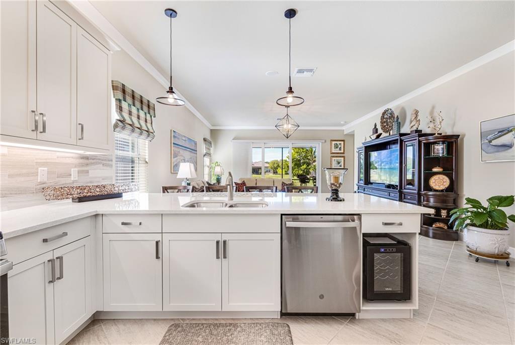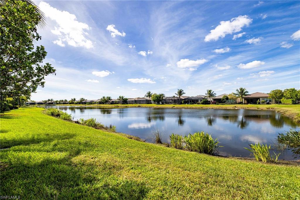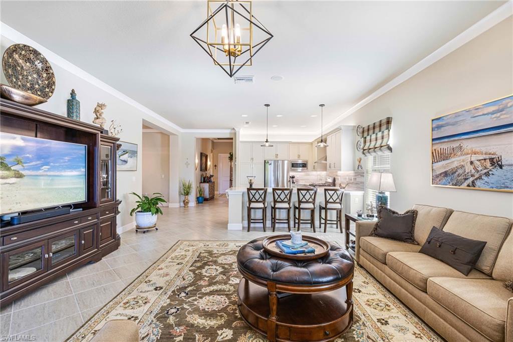 Welcome to this beautifully enhanced Tribeca floor plan in the highly sought-after 55+ community of Valencia Bonita, where more than $70,000 in thoughtful upgrades elevate everyday living. Offering over 2,200 square feet of stylish comfort, this residence showcases easy-maintenance tile flooring in the main living areas, plush carpeting in the bedrooms, designer lighting, and crown molding throughout. The kitchen is a true highlight, featuring abundant white cabinetry, quartz countertops, energy-efficient stainless-steel appliances, a gas cooktop, and a generous breakfast bar complemented by a separate formal dining areau2014ideal for everyday meals or hosting guests. A pavered driveway and welcoming entryway lead into a layout that includes 3 spacious bedrooms, 2 full baths plus a powder room, a versatile den, and an inviting great room. Step onto the screened, covered lanai to embrace effortless Florida lifestyle living, with serene lake views and unforgettable western sunsets creating a picturesque backdrop for outdoor relaxation. The owneru2019s suite offers a peaceful retreat complete with a seamless glass shower and elevated finishes. Beyond the home, Valencia Bonita gives residents access to a remarkable 10-acre amenity campus centered around an impressive clubhouse, where youu2019ll find multiple poolsu2014including a resort-style pool, a lap pool, and a resistance poolu2014along with tennis, pickleball, bocce, a dog park, fire pit, and a pro shop. Inside, enjoy a grand ballroom for performances and social events, a fully equipped fitness center, spa with treatment rooms and a nail salon, indoor and outdoor dining at the on-site restaurant and bars, card rooms, a sports lounge, arts and crafts spaces, yoga and exercise studios, ping-pong, massage rooms, and so much more. This exceptional home blends a beautifully upgraded private retreat with direct access to one of Southwest Floridau2019s most vibrant active-adult lifestyles.