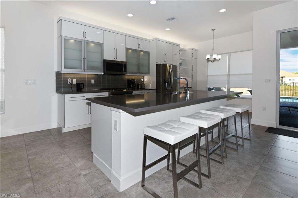 An exceptional Water View!! Cabernet model elevated 22 feet above sea level u2014 no flood insurance required u2014 offering rare, high-end upgrades and refined indoor-outdoor living that set it apart from the rest.Enhanced beyond builder standards, this home features high-impact glass windows, double glass entry doors, upgraded tile flooring in the den and all bedrooms, and added designer lighting. The chefu2019s kitchen is a true centerpiece with a dramatic 4u2019 x 10u2019 island, upgraded cabinetry with interior and under-cabinet lighting, custom coffee station, wet bar, designer backsplash, gas stove, upgraded wine fridge and oven, plus a new refrigerator (2026).The spa-inspired primary bath showcases ceiling-height tile, mirrors to the ceiling, and frosted privacy glass for a sleek, modern finish.Outdoors, the property becomes extraordinary u2014 a saltwater pool with gas heater and auto water leveling, expanded entertaining patio, extended fencing, custom retaining wall for added flood protection, enhanced landscape lighting, and gas-ready BBQ area. A dedicated garage outlet for golf cart charging adds further convenience.Offered fully furnished (excluding select personal items), this is a rare turnkey opportunity in a community featuring a 45,000 sq. ft. clubhouse and the 5-star restaurant, The Oasis.Elevated. Upgraded. Truly one of a kind.