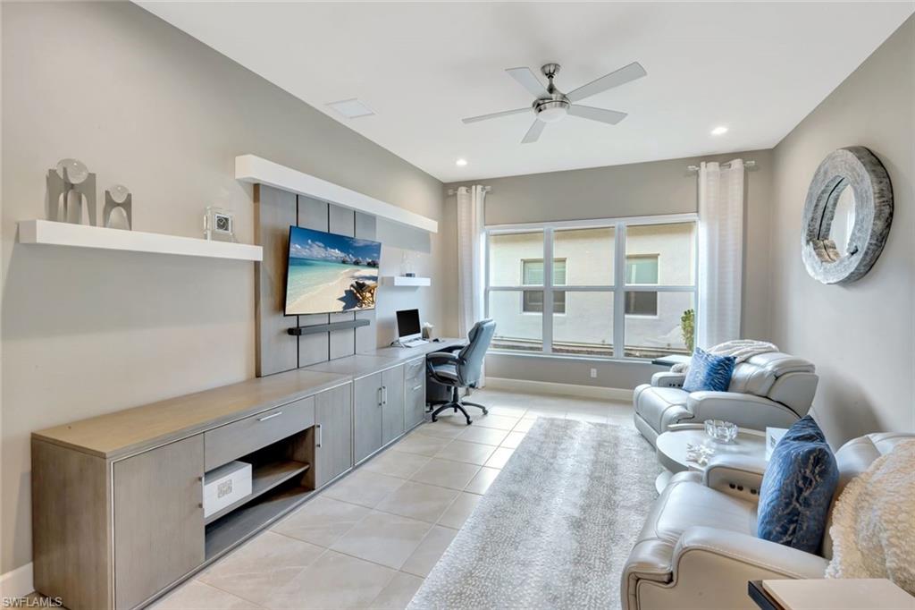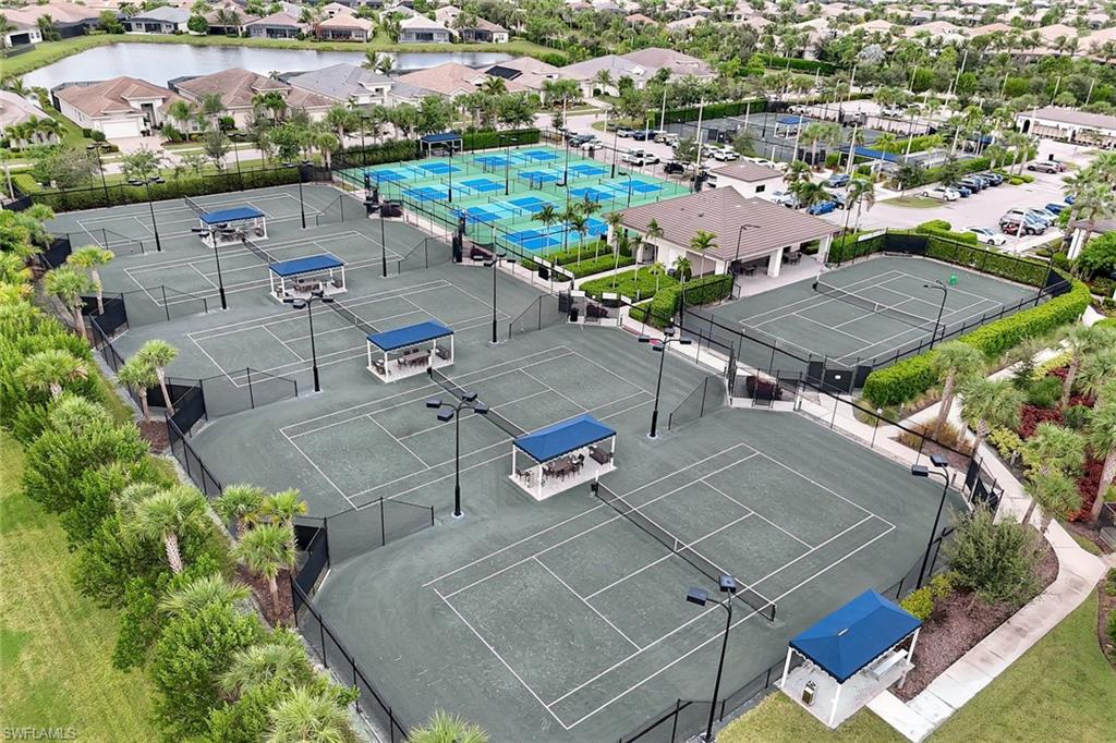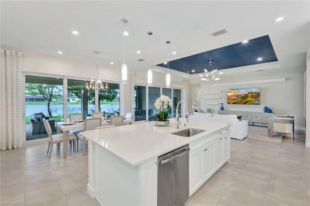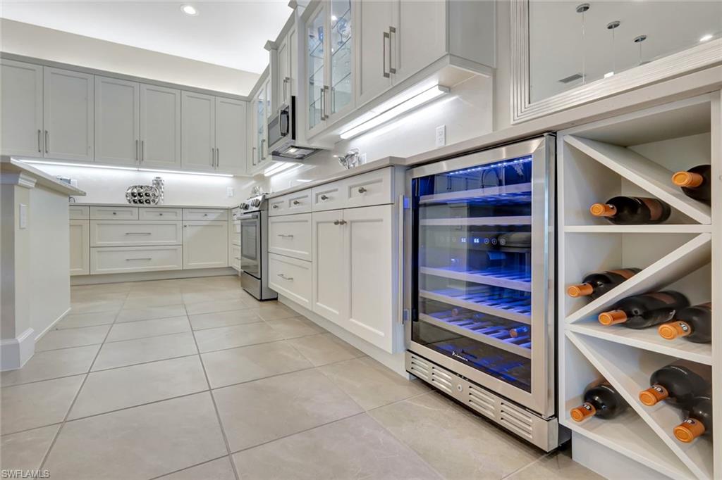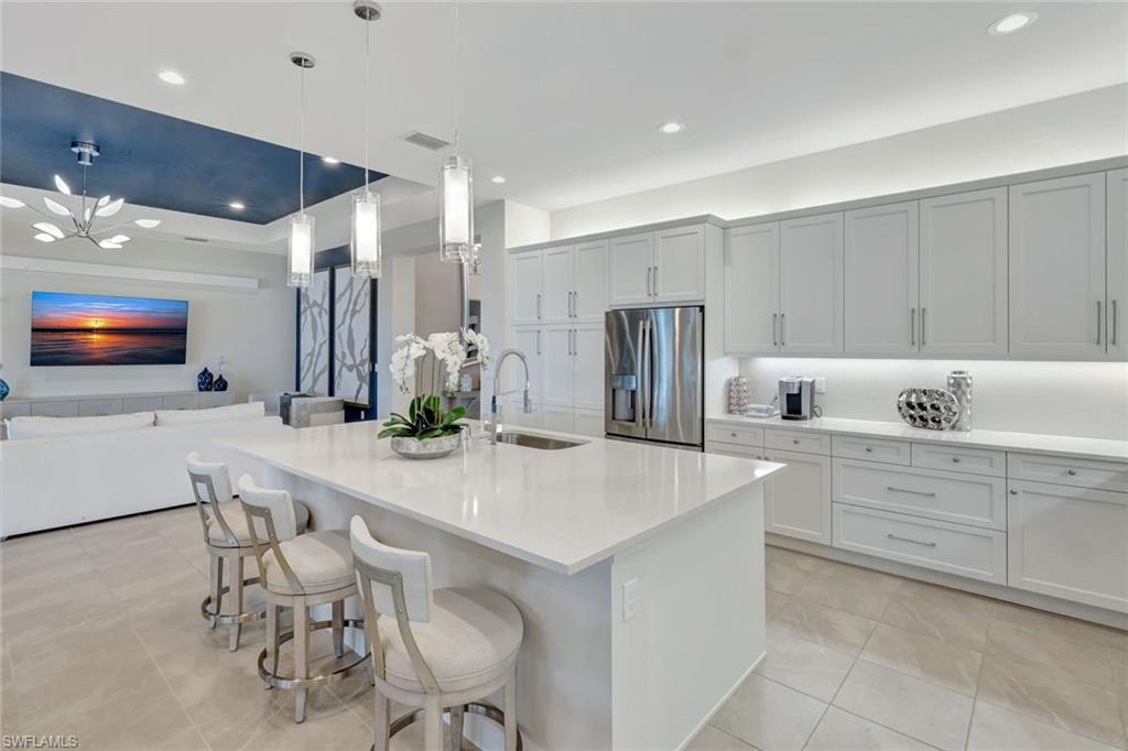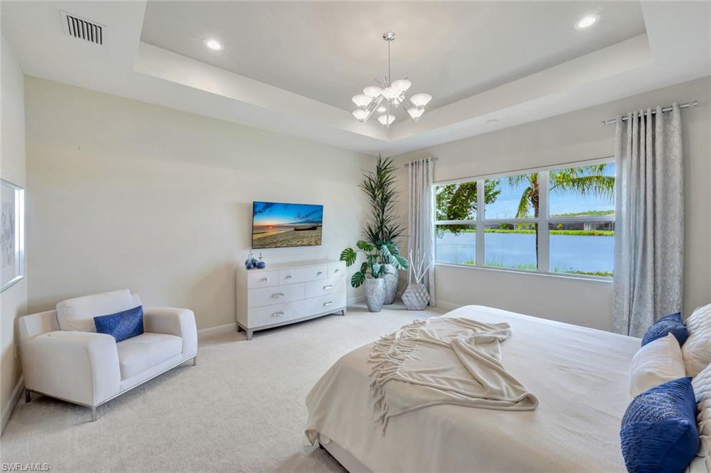 Fantastic News! A u201cNAPAu201d floor plan is available! This top selling floor plan for GL Homes is located in Valencia Bonita, a 55+ Active Adult manned gated community which provides resort living at its best. As you enter the home through the upgraded glass front doors, the first thing you notice is one of the best lake views in the community. This view on the largest lake, is really appreciated when relaxing or entertaining on the oversized covered back patio watching the beautiful sunset. The home site is in close proximity to the clubhouse amenities where you have access to all the resort amenities, including the 45,000 sq. ft. clubhouse with indoor and outdoor restaurants, bars, many pools & much more. This desired floor plan was designed to offer a bright open great room concept with four bedrooms each with their own private bathrooms plus a versatile den along with a half bath and a spacious 3-car epoxied floored garage. This well appointed home with many upgrades and striking designer chandeliers provides the ultimate Florida lifestyle. Highlights include a custom outdoor kitchen with a four season outdoor refrigerator, impact glass, custom built-ins in the den & dining area, providing pull out lower drawers, quartz countertop with wine chiller, upgraded 17u201d tile flooring in main living area and den, large walk-in customize closets in the primary bedroom along with new carpeting and motorized shades on all windows. The gourmet kitchen boasts upgraded appliances with a BOSCH natural gas range, upgraded sparkling quartz countertops, 42u201d upper white wood cabinetry with above & undercabinet lighting, along with molding and valence on cabinets, pull out base drawers along with upper glass cabinet fronts with lighting & a large cabinet pantry. Also provided is a large single bowl stainless steel undermount sink with a modernized chrome faucet and expanded overhead LED lighting. The primary suite bathroom offers dual vanities, white wood raised panel cabinets, quartz countertops, large walk-in shower, soaking tub, a custom cabinet linen closet & builder upgraded tile package for flooring and shower walls. All other bathrooms come appointed with quartz countertops, white wood raised panel cabinets, banjo feature on senior height toilets and builder upgraded tile packages. Valencia Bonita is a top selling Active Adult 55+ community in Bonita Springs with a spectacular clubhouse and amenities! The clubhouse is located on a 10-acre complex offering a resort style swimming pool, 60 ft. lap swimming pool, resistance exercise pool, grandchildren wading pool, racket center pro shop, tennis courts, pickelball courts, bocce courts, dog park & fire pit. Residents also enjoy performances and social events in the grand ballroom, fully equipped fitness center, spa with treatment rooms & nail salon, restaurant with indoor and outdoor bars, card rooms, sports lounge, arts and crafts room, yoga/exercise, studio, ping-pong, massage rooms & so much more!