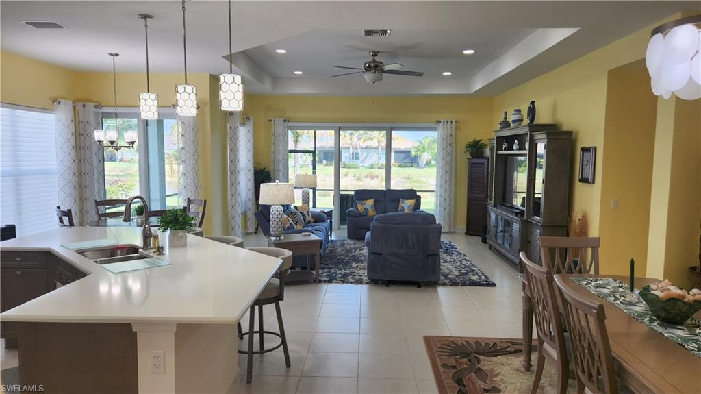 Welcome Home! This beautiful property at 28563 Twain Drive in the stunning Valencia Bonita 55+ active adult community. Built in 2021 by GL Homes, the Chandon model offers 4 bedrooms and 3 full baths providing 2,464 square feet of living space under air. As you enter the home through the spacious foyer, you will find a colorful world of comfort and elegance with upgraded lighting throughout. A large gourmet kitchen with quartz countertops, cabinet lighting, wine cooler, breakfast bar and dining area. The great room and formal dining room provide great opportunities for entertaining guests or just relaxing. The spacious screened lanai offers tranquil lake views. The primary suite with en-suite has tray ceilings, three large windows with lake views, walk-in closets, custom cabinets, oversized shower and dual vanities. The second bedroom provides it's own en-suite carefully designed for guests. Bedrooms 3 and 4 are versatile enough to use as office or den. The two-car garage has epoxy flooring, storage racks and pull down attic access with an additional 338 sq. ft. of storage. A tankless water heater ensures hot water on-demand. Custom window treatments, Hunter Douglas pull down shades, ceiling fans throughout the home, closet storage racks, whole house purification system, frosted bath windows, Vitex security system and whole house surge protection complete this wonderful home. Imagine your new lifestyle! Valencia Bonita offers the following community amenities. A 45,000 SF clubhouse and lifestyle complex with a fitness center, grand ballroom, billiards, card rooms, cooking and art studios, and a cafe offering breakfast, lunch and dinner. A full spa will keep you pampered with massages and other aesthetic treatments. Outdoor amenities include pools, outdoor bar, tennis and pickleball courts, and two dog parks.